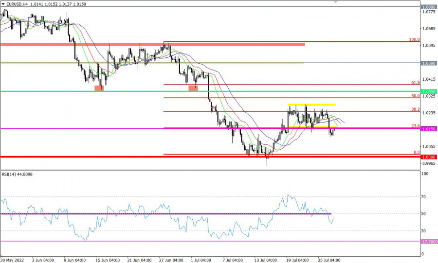 Горящий прогноз по EUR/USD от 27.07.2022ИнстаФорекс - Instaforex, 3 года назад Хотя вчера, как и в понедельник макроэкономический календарь был совершенно пуст, единая европейская валюта с самого открытия европейской торговой сессии стала уверенно снижаться. Продолжалось это вплоть до открытия американской торговой сессии, после чего рынок застыл на месте. В итоге, единая европейская валюта потеряла примерно 100 пунктов. Единственное чем можно это объяснить, так это уверенностью участников рынка относительно итогов сегодняшнего заседания Федерального комитета по операциям на открытом рынке. То, что ставку рефинансирования сегодня повысят на 75 базисных пунктов, является вопросом в целом решенным. Гораздо важнее, что будет делать американский регулятор дальше. Укрепление доллара возможно только в том случае, если Федеральная Резервная Система объявит об аналогичном повышении еще и в ходе сентябрьского заседания. Иными словами, большинство инвесторов вдруг уверовали в то, что именно это Джером Пауэлл и скажет. Либо, речь идет о банальной спекулятивной атаке, в результате чего, сразу же после заседания Федерального комитета по операциям на открытом рынке единая европейская валюта резко подскочит вверх. Так что все будет зависеть от того, что именно скажет глава Федеральной Резервной Системы. Валютная пара EURUSD завершила движение в рамках бокового канала 1.0150/1.0270 пробоем его нижней границы. В итоге котировка вплотную подошла к отметке 1.0100, где возник откат к нижней границе ранее пройденного флета. Технический инструмент RSI H4 пересек среднюю линию 50 сверху вниз, что указывает на завершение флэта. RSI D1 все это время игнорировал стадию коррекции и флэт. Индикатор движется в нижней области 30/50, что указывает на высокий интерес трейдеров к нисходящему тренду. Скользящие линии MA на индикаторе Alligator H4 завершили этап переплетения. Линии направлены вниз, но до тех пор, пока они находятся выше уровня 1.0150, сохраняется риск последующего переплетения. Ожидания и перспективы В данной ситуации на рынке имеет место спекулятивный интерес, который приводит к хаотичным скачкам цены. Для того чтобы сигнал к продаже евро подтвердился, котировке необходимо удержаться ниже отметки 1.0100. В этом случае участники рынка направится в сторону уровня паритета. В противном случае пробой границы 1.0150 мог быть ложным, а котировка вернется в рамки прежнего флета. Комплексный индикаторный анализ имеет сигнал к покупке в краткосрочном периоде ввиду отката. Технические инструменты во внутридневном периоде указывают на продажу, за счет пробоя уровня 1.0150. Материал предоставлен компанией InstaForex - www.instaforex.com |