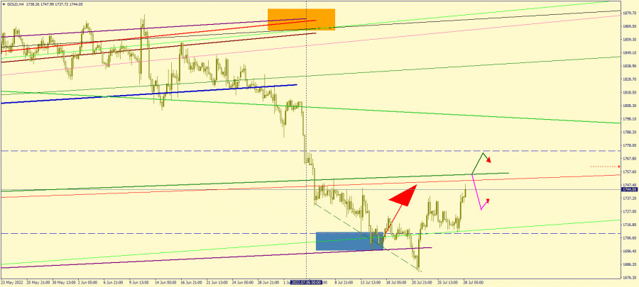 ЗолотоИнстаФорекс - Instaforex, 3 года назад #GOLD На графике изображен скрин графика текущего движение курса золота (#GOLD) от 28.07.2022 в чарте H4. На скрине графика, для сравнения, сохранено геометрическое построение от предыдущего технического анализа того же торгового инструмента (13.07.2022). Область уровня сопротивления, ок. $1755,0, представляет собой ключевую развилку для дальнейшего набора высоты. Высоко вероятна от этого уровня ценовая коррекция желтого металла в сторону $1727,0. Случай пробоя области сопротивления убедит нас в закреплении динамики роста с новой целью $1772,0 за 1 тройскую унцию. Материал предоставлен компанией InstaForex - www.instaforex.com |