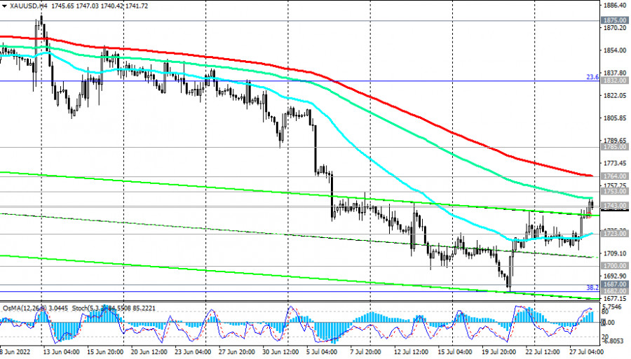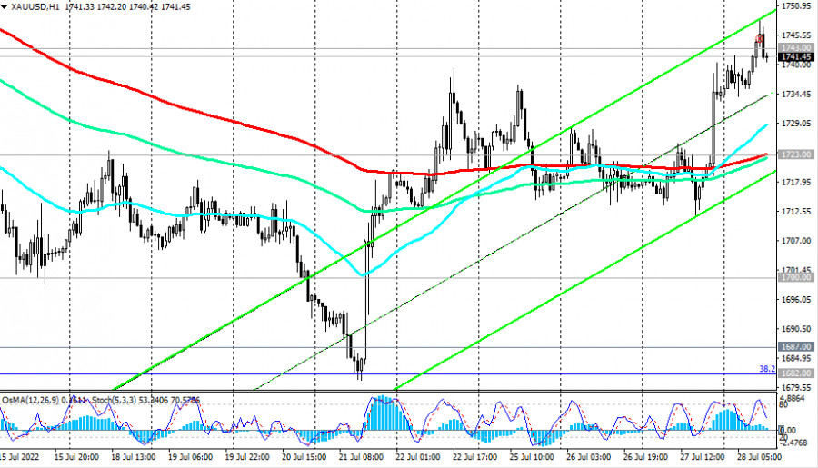 XAU/USD: технический анализ и торговые рекомендации на 28.07.2022ИнстаФорекс - Instaforex, 3 года назад Как мы отметили в нашем сегодняшнем «Фундаментальном анализе», XAU/USD сегодня продолжает расти после вчерашнего «подскока», пытаясь вернуться в зону долгосрочного бычьего рынка, выше уровня сопротивления 1743.00 (ЕМА144 на недельном графике). Отметим, что первый сигнал для возобновления покупок поступил еще в конце прошлой недели, когда XAU/USD пробила важный краткосрочный уровень сопротивления 1723.00 (ЕМА200 на 1-часовом графике). Вчера пара получила новый импульс к росту на фоне масштабного ослабления доллара. Теперь для закрепления успеха ей необходимо вырасти в зону выше важного уровня сопротивления 1764.00 (ЕМА200 на 4-часовом графике). Тогда, после пробоя уровня сопротивления 1785.00 (ЕМА50 на дневном графике) дорога будет открыта к ключевому уровню сопротивления 1832.00 (ЕМА200, ЕМА144 на дневном графике, ЕМА50 на недельном графике и уровень Фибоначчи 23,6% коррекции к волне роста с декабря 2015 года и отметки 1050.00). Его пробой, в свою очередь, окончательно вернет XAU/USD в зону долгосрочного бычьего рынка. В альтернативном сценарии инвесторы вновь поставят на первое место политику ФРС, отодвинув на второй план геополитические и инфляционные риски, также в качестве защитного инструмента предпочтя доллар. Пробой долгосрочного уровня поддержки 1668.00 (ЕМА50 на месячном графике) «может «вытолкнуть» XAU/USD из зоны долгосрочного бычьего рынка, направив ее в сторону уровней поддержки 1275.00, 1050.00, пробой которых завершит этот процесс». Первый сигнал для реализации данного альтернативного сценария – пробой локального уровня поддержки 1712.00. *) о предстоящих важных событиях этой недели см. в «Важнейшие экономические события недели 25.07.2022 – 31.07.2022». Уровни поддержки: 1723.00, 1712.00, 1700.00, 1687.00, 1682.00, 1668.00 Уровни сопротивления: 1743.00, 1753.00, 1764.00, 1785.00, 1800.00, 1832.00, 1875.00