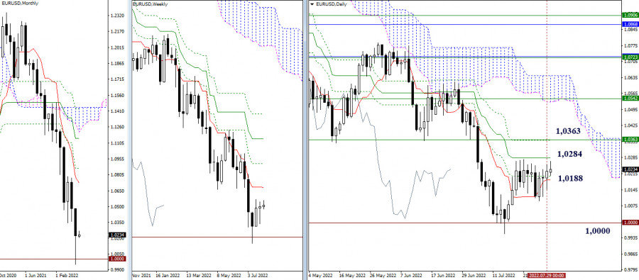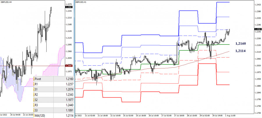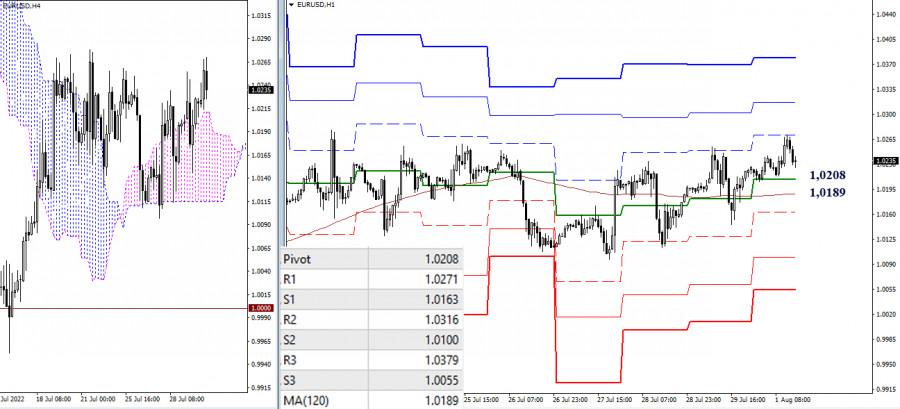 EUR/USD и GBP/USD 1 августа – рекомендации технического анализаИнстаФорекс - Instaforex, 3 года назад EUR/USD Старшие таймфреймы Июль сумел протестировать важный психологический уровень 1,0000. Тем не менее итоговая месячная свеча имеет длинную нижнюю тень, пара длительное время находится в зоне восходящей коррекции. В результате этого ближайшей важной задачей для игроков на понижение продолжает оставаться преодоление поддержки 1,000 и развитие нисходящего тренда, через обновление минимального экстремума (0,9952). Интересы игроков на повышение в настоящий момент упираются в сопротивление дневного среднесрочного тренда (1,0284), а последующей важной задачей является ликвидация дневного мёртвого креста Ишимоку (1,0362) и переход на сторону быков недельного краткосрочного тренда (1,0363). Н4 – Н1 На младших таймфреймах игроки на повышение сохраняют преимущество, располагаясь выше ключевых уровней, которые сегодня можно отметить на 1,0208 (центральный Пивот-уровень) и 1,0189 (недельная долгосрочная тенденция). Повышательными ориентирами для продолжения подъёма внутри дня сегодня являются сопротивления классических Пивот-уровней (1,0271 – 1,0316 – 1,0379). В случае активности игроков на понижение и прохождения ими ключевых уровней (1,0208 – 1,0189), их интересы будут внутри дня направлены на тестирование поддержек классических Пивот-уровней (1,0163 – 1,0100 – 1,0055). *** GBP/USD Старшие таймфреймы Фунт закрыл июль с некоторыми сомнениями, сформировав длинноногий Дожи. Игроки на повышение приступили к тестированию сопротивлений недельного краткосрочного тренда (1,2178) и нижней границы дневного облака Ишимоку (1,2234). От результата тестирования будет зависеть дальнейшее развитие событий. Если победу одержат игроки на повышение, то им откроется дорога к верхней границе дневного облака, усиленной недельным Фибо Киджуном (1,2479) и нижней границей месячного облака (1,2557). Если же игроки на понижение сейчас сумеют вернуть ситуацию к поддержкам дневного креста (1,2113 – 1,2075 – 1,2046 – 1,1978), усиленного важным психологическим уровнем 1,2000, то сопернику придётся начинать всё сначала с новыми более значительными усилиями. Если действующий дневной крест будет ликвидирован, то интересы игроков на повышение устремятся к минимальному экстремуму (1,1759), а задачей станет восстановление нисходящего тренда. Н4 – Н1 На младших таймфреймах преимущество принадлежит игрокам на повышение, которые развивают восходящий тренд. Сейчас тестируется сопротивление первого классического Пивот-уровня (1,2257), далее ориентирами для подъёма служат 1,2343 (R2) и 1,2440 (R3). Ключевые уровни младших таймфреймов сегодня можно отметить на 1,2160 (центральный Пивот-уровень дня) и 1,2114 (недельная долгосрочная тенденция). Потеря данных уровней изменит действующий баланс сил. Ориентирами для снижения станут поддержки классических Пивот-уровней, они сейчас расположены на 1,2074 – 1,1977 – 1,1891. *** При техническом анализе ситуации используются: старшие таймфреймы – Ichimoku Kinko Hyo (9.26.52) + уровни Фибо Киджун Н1 – Pivot Points (классические) + Moving Avarage 120 (недельная долгосрочная тенденция) Материал предоставлен компанией InstaForex - www.instaforex.com |