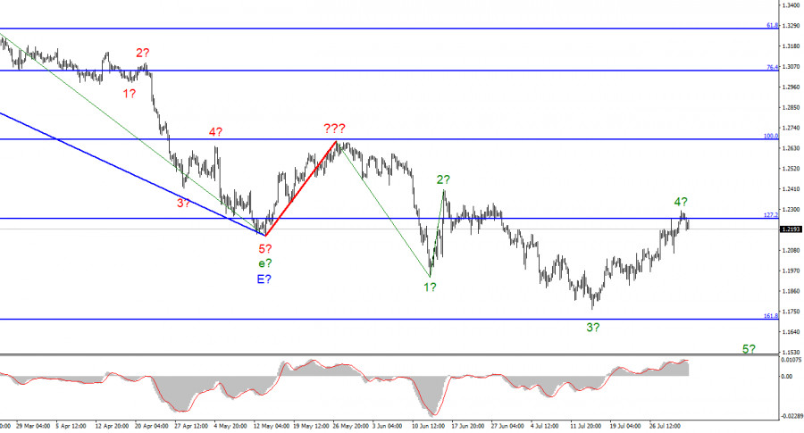 Анализ GBP/USD. 2 августа. Почва из-под ног британца тоже начинает уплыватьИнстаФорекс - Instaforex, 3 года назад По инструменту Фунт/Доллар волновая разметка на данный момент выглядит довольно сложно, но не требует внесения коррективов. Повышательная волна, которая была построена в период между 13 и 27 мая, не вписывается в общую волновую картину, но все же ее можно считать коррекционной в составе нисходящего участка тренда. Таким образом, сейчас уже совершенно точно можно сказать, что построение восходящего коррекционного участка тренда отменяется, а нисходящий участок тренда принимает более протяженный и сложный вид. Я не большой сторонник того, чтобы постоянно усложнять волновую разметку, когда мы имеем дело с сильно удлиняющимся участком тренда. Я считаю, что гораздо более целесообразно будет идентифицировать редкие коррекционные волны, после которых будут строиться новые импульсные структуры. В данное время мы имеем завершенные волны 1, 2 и 3, так что можно предположить, что сейчас инструмент находится в процессе построения волны 4 (которая тоже может быть уже завершена или близиться к завершению). Волновые разметки евро и фунта немного отличаются тем, что по евро нисходящий участок тренда имеет импульсный вид (пока еще). Но восходящие и нисходящие волны чередуются практически одинаково, и в данное время оба инструмента могут завершить одновременно построение своих четвертых волн. В ближайшие дни я по-прежнему ожидаю нового снижения британца. Новости из Тайваня и Китая приходят каждые 5 минутКурс инструмента Фунт/Доллар в течение 2 августа снизился на 40 базовых пунктов. Это небольшое снижение, но неудачная попытка прорыва уровня 127,2% по Фибоначчи указывает на готовность рынка завершить построение предполагаемой волны 4. И до удачной попытки прорыва этой отметки я предлагаю рассматривать этот вариант как рабочий. Сегодня новостной фон в Евросоюзе, США и Великобритании отсутствовал. Но в то же время весь мир наблюдает за передвижением самолета Нэнси Пелоси, который уже в ближайшие полчаса должен приземлиться в аэропорту Тайбэя. А новости по этой теме поступают каждый 5 минут. Только что стало известно, что в Восточном Китае объявлена тревога, а китайские истребители поднялись в воздух и направляются по направлению к тайваньскому проливу. Тайваньские власти в это же время объявили второй уровень тревоги, а борт Нэнси Пелоси пытается зайти на посадку. Градус накала повышается буквально каждые пять минут, а весь мир наблюдает за этим событием и надеется, что не произойдет непоправимого. Все-таки в Китае не каждый день объявляют тревогу, а их истребители нечасто направляются на перехват вражеских бортов. Пока не произошло ничего катастрофического и спрос на доллар США растет умеренно. Но я не сомневаюсь, что сегодня мы получим еще не один десяток новостей по этой теме и рынок может очень больно воспринять любую информацию, которая будет отличаться от стандартной. А стандартной информацией является посадка без происшествий самолета Нэнси Пелоси в аэропорту, беспроблемные встречи с тайваньским правительством и отбытие Пелоси обратно в Вашингтон. В случае возникновения чрезвычайных ситуаций, американская валюта может ускорить свой рост. Общие выводыВолновая картина инструмента Фунт/Доллар предполагает дальнейшее снижение. Та