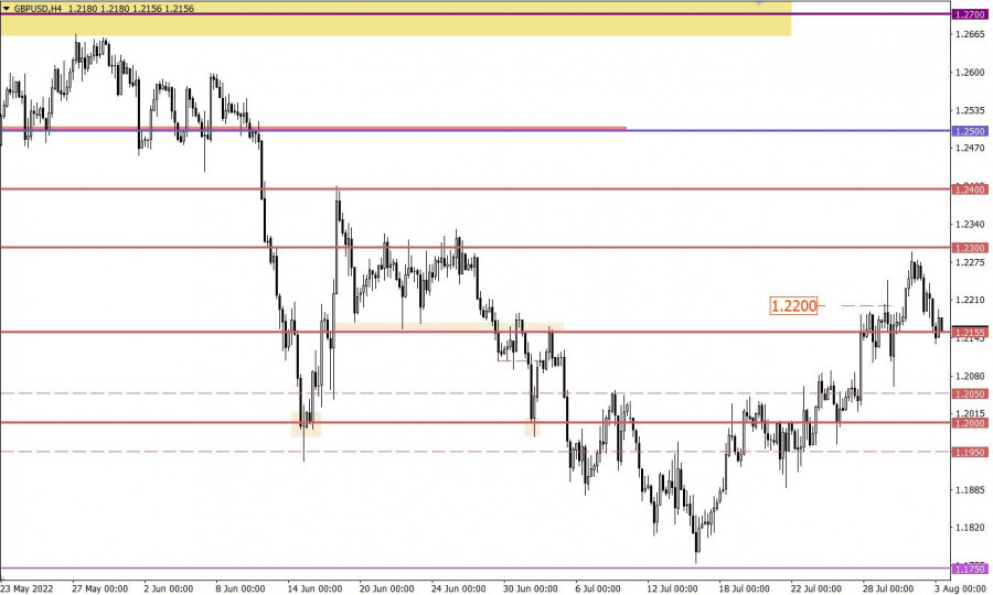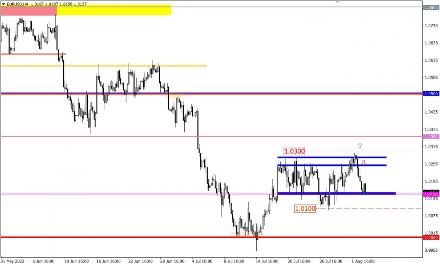 Учимся и анализируем, торговый план для начинающих трейдеров EURUSD и GBPUSD 03.08.22ИнстаФорекс - Instaforex, 3 года назад Детали экономического календаря от 2 августа В период американской торговой сессии были опубликованы данные по открытым вакансиям в Соединенных Штатах, число которых снизилось с 11,303 млн до 10,690 млн, что значительно сильнее прогноза в 11,000 млн. Это негативный фактор, но он был полностью проигнорирован рынков. Возможно, всему виной сильный информационный фон Китай – Тайвань – США. Разбор торговых графиков от 2 августаВалютная пара EURUSD вторую неделю подряд ходит в рамках бокового канала 1.0150/1.0270, последовательно отрабатывая заданные границы. В период минувшего дня наблюдался интерес к долларовым позициям на рынке Forex. Вследствие этого котировка опустилась от значения 1.0270 к 1.0150, в итоге завершив цикл хода от верхней к нижней границы флета. Валютная пары GBPUSD замедлила построение коррекционного хода в районе уровня сопротивления 1.2300, где возник характерный отскок цены. Вследствие этого появился поэтапный рост объема коротких позиций, на основе которого котировка вернулась к значению 1.2155. Экономический календарь на 3 августаСегодня будут опубликованы итоговые данные по индексу деловой активности в сфере услуг, а также показатели по составному индексу в Европе, Великобритании и Соединенных Штатах. Однако, как и в случае с производственным индексом, который был опубликован в понедельник, это никак не повлияет на рынок, так как данные должны лишь подтвердить предварительные оценки. Рынок их уже заложил в текущие котировки. Временной таргетинг: Индекс деловой активности в секторе услуг ЕС – 11:00 по МСК Индекс деловой активности в секторе услуг Великобритания – 11:30 по МСК Индекс деловой активности в секторе услуг США – 16:45 по МСК Торговый план – ЕВРО/ДОЛЛАР 3 августаВ данной ситуации трейдеры по-прежнему ориентированы на две основных стратегии: отскок и пробой относительного заданных границ флета. Детали стратегии: Отскок от той или иной границы флета рассматривает локальные движения цены. Работа подразумевает умеренный риск, при котором возможно забирать часть хода с каждого цикла построения флета. В случае тактики работы на пробой, особое внимание уделяется значениям 1.0300 при восходящем сценарии и 1.0100 при нисходящем развитие рынка. Подтверждение сигнала должно возникнуть в четырехчасовом периоде в виде удержания цены. Торговый план – ФУНТ/ДОЛЛАР 3 августаНесмотря на локальный нисходящий ход, действующая коррекция все еще актуальна на рынке. По этой причине возвращение цены выше отметки 1.2200 вполне может перезапустить длинные позиции, что приведет к движению в сторону уровня сопротивления 1.2300. Альтернативный сценарий рассматривает поэтапное завершение коррекционного хода. При этом развитие удержание цены ниже значения 1.2120 откроет путь по направлению психологического уровня 1.2000. Что отражено на торговых графиках?