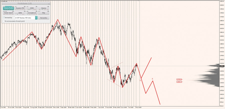 Альтернативный сценарий: при закреплении котировок индекса Nasdaq ниже зоны 1/2 (12669.5) при откатах искать продажи по паттерну в новом диапазоне выгодных цен с целями: обновление максимумов и тестирование верхней границы НКЗ (12332.0).