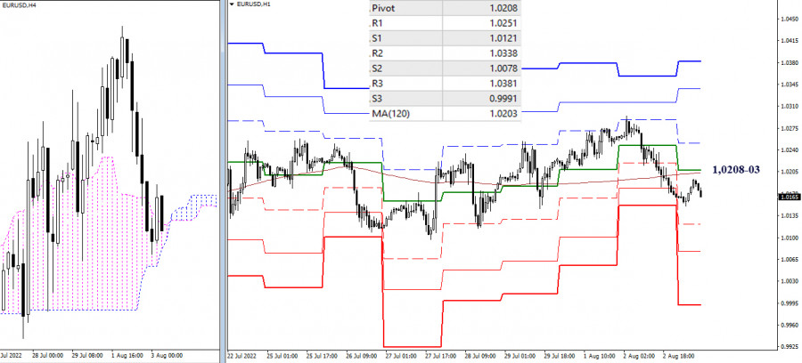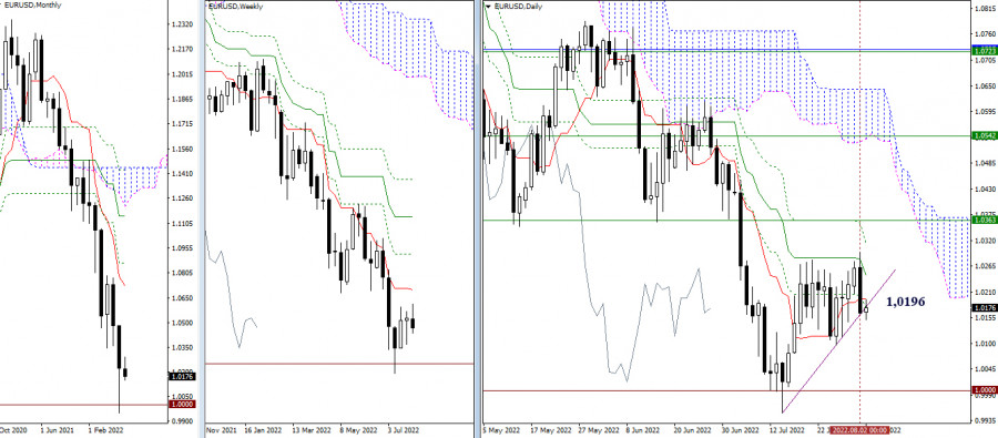 EUR/USD и GBP/USD 3 августа – рекомендации технического анализаИнстаФорекс - Instaforex, 3 года назад EUR/USD Старшие таймфреймы Вчера инициатива принадлежала игрокам на понижение. Они спустились до трендовой линии. На дневном тайме сформирован отбой от среднесрочного тренда (1,0284). Подтверждение отбоя и продолжение снижения направит основной медвежий интерес в зону 1,0000 – 0,9952 (психологическая поддержка + минимальный экстремум). Если сейчас пара не сможет продолжить снижение, то её ждёт или консолидация с центром притяжения в районе дневного краткосрочного тренда (1,0196), или возврат в район среднесрочного тренда (1,0284). Н4 – Н1 Ключевые уровни младших таймфреймов перешли на сторону игроков на понижение. Ориентиры для продолжения снижения внутри дня сегодня расположены на 1,0121 – 1,0078 – 0,9991 (классические Пивот-уровни). Если игроки на повышение сумеют вернуть себе наиболее значимые уровни – недельную долгосрочную тенденцию (1,0203) и центральный Пивот-уровень (1,0208), то действующий баланс сил младших таймов вновь сместится на сторону быков, вернув актуальность повышательным ориентирам, которые сегодня расположены на 1,0251 – 1,0338 – 1,0381 (сопротивления классических Пивот-уровней). *** GBP/USD Старшие таймфреймы На дневном тайме вчера сформирован отбой от нижней границы дневного облака (1,2248). При этом пара вернулась в зону притяжения недельного краткосрочного тренда (1,2178), который может сейчас помешать развитию медвежьих настроений. В случае продолжения снижения ближайшие поддержки можно обозначить на рубежах 1,2104 – 1,2089 (дневные уровни), 1,2000 – 1,2026 (психологический уровень + дневной среднесрочный тренд). Н4 – Н1 В настоящий момент на младших таймах идёт борьба за ключевой уровень 1,2175 (недельная долгосрочная тенденция), который определяет распределение сил и текущие предпочтения рынка. Работа ниже уровня (1,2175) усиливает медвежьи ожидания. Понижательные ориентиры сегодня расположены на 1,2120 – 1,2078 – 1,1999 (поддержки классических Пивот-уровней). Работа выше уровня (1,2175) формирует бычьи преимущества. В этом случае среди дополнительных ориентиров для подъёма можно отметить сопротивления классических Пивот-уровней (1,2241 – 1,2320 – 1,2362). *** При техническом анализе ситуации используются: старшие таймфреймы – Ichimoku Kinko Hyo (9.26.52) + уровни Фибо Киджун Н1 – Pivot Points (классические) + Moving Avarage 120 (недельная долгосрочная тенденция) Материал предоставлен компанией InstaForex - www.instaforex.com |