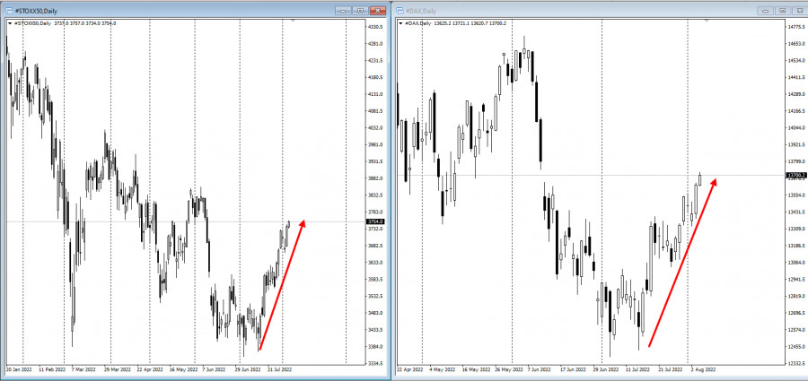 Солидные отчёты Moderna и PayPal вытолкнули фондовый рынок США вверхИнстаФорекс - Instaforex, 3 года назад Американские фондовые индексы прервали двухдневное снижение в среду, поскольку корпоративные доходы и экономические данные оказались лучше, чем ожидалось. Казначейские облигации сократили потери, поскольку трейдеры ожидали дальнейшего повышения процентных ставок со стороны Федеральной резервной системы. Солидные отчеты от Moderna Inc. и PayPal Holdings Inc. подтолкнули Nasdaq 100 к росту на целых 3%, подняв его до уровня, который в последний раз наблюдался в мае. S & P 500 закрылся ростом на 1,6%. Европейские фондовые индексы так же переписали свои экстремумы: "Теперь, когда мы завершили сезон отчетности о доходах на 70%, мы можем четко сказать, что это не армагеддон, которого многие боялись, - сказал Арт Хоган, главный рыночный стратег B. Riley Wealth. - Это важно". Доходность 10-летних казначейских облигаций превысила 2,80%, прежде чем упасть до 2,70% позже в тот же день, поскольку инвесторы пересмотрели ожидания относительно пути повышения ставки ФРС. Последние данные также показали ослабление опасений по поводу более широкого замедления экономического роста, поскольку рост в секторе услуг США неожиданно усилился до трехмесячного максимума в июле. Казначейские облигации выросли на прошлой неделе после того, как председатель Джером Пауэлл дал понять, что темпы будущего повышения ставок могут замедлиться в конце этого года, что повысит шансы на снижение ставок в следующем году в рамках мер, подразумеваемых рынком. Но несколько руководителей ФРС с тех пор заявили, что центральный банк еще далеко не закончил ужесточение и он по-прежнему сосредоточен на сдерживании роста цен, который является самым высоким за четыре десятилетия. Рынки также несколько успокоились, поскольку напряженность в отношениях между США и Китаем ослабла после того, как спикер Палаты представителей Нэнси Пелоси покинула Тайвань. Ее визит вызвал гневную реакцию со стороны Китая, и рынки были на взводе в преддверии ее прибытия во вторник. Американские фондовые индексы вернулись к росту в среду после сессии с множеством поворотов предыдущего дня. Но торговля акциями не отражает встречных ветров, с которыми сталкивается рынок, по словам стратега Goldman Sachs Group Inc. Шарон Белл. "Там немного самоуспокоенности, и рынки не в полной мере учитывают риски", - сказал она. Индекс Московской Биржи продолжает торговаться под техническим сопротивление 2200: Новости на этой неделе: