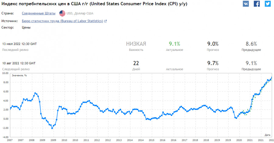 Индекс доллара DXY: ближайшие перспективыИнстаФорекс - Instaforex, 3 года назад Новая торговая неделя начинается на фоне отсутствия в экономическом календаре публикаций важных макроэкономических индикаторов. Лишь только в среду на рынке могут появиться новые драйверы для роста или падения доллара: в 12:30 (GMT) будут опубликованы свежие данные по потребительской инфляции в США (подробнее см. в Важнейшие экономические события недели 08.08.2022 – 14.08.2022). Как ожидается, индекс потребительских цен (Consumer Price Index, CPI), который определяет изменение цен выбранной корзины товаров и услуг за данный период и является ключевым индикатором для оценки инфляции и изменения покупательских предпочтений, выйдет за июль со значением +0,2% и +8,7% (в годовом выражении). Базовый CPI (продовольствие и энергия исключены из этого индикатора для получения более точной оценки) выйдет со значением +0,5% и +6,1% (в годовом выражении), что говорит о продолжающемся инфляционном давлении в американской экономике. Теоретически данные лучше прогноза должны укрепить доллар, т.к. они будут свидетельствовать о необходимости дальнейших действий со стороны ФРС по обузданию высокой инфляции. Однако назвать нынешнюю ситуацию в американской и в большей части мировой экономик нормальной нельзя. Тем более что продолжающийся рост инфляции в США говорит о пока что малой эффективности предпринимаемых ФРС действий. Поэтому реакция рынка на эту публикацию может быть совершенно непредсказуемой. А пока что рынки продолжают находиться под впечатлением публикации в минувшую пятницу данных Минтруда США. Как следует из этого отчета, в июле число новых рабочих мест в несельскохозяйственном секторе американской экономики выросло на 528 000, а уровень безработицы снизился до 3,5%. Прогноз предполагал снижение темпов создания новых рабочих мест (вне с/х сектора), до 250 000 с 372 000 в июне, хотя, уровень безработицы ожидался на той же отметке 3,6%. Сильные данные улучшили настроения покупателей доллара и усилили ожидания дальнейших повышений процентной ставки в этом году со стороны ФРС (см. также Инструменты фундаментального анализа. Динамика рынка труда и Инструменты фундаментального анализа. Кредитно-денежная политика центрального банка). Данные по рынку труда США вышли после публикации неделей ранее разочаровывающих данных по ВВП страны за 2-й квартал и немного сгладили негативное влияние на доллар отрицательного значения ВВП. На сильных данных с рынка труда индекс доллара DXY вновь превысил отметку 106.00, достигнув локального внутри недельного максимума 106.81. Сегодня фьючерсы на индекс доллара DXY торгуются вблизи отметки 106.38, сохраняя позитивную динамику (см. также «Индекс доллара DXY: немного истории, текущая ситуация, перспективы»). И все же, участники рынка будут тщательно анализировать поступающие из США макро данные, чтобы лучше понять направление дальнейшей динамики доллара. А на сегодня важных новостей в экономическом календаре нет. Вероятнее всего, основные долларовые валютные пары проведут сегодняшний и завтрашний дни в диапазонах. Что же касается индекса доллара (в торговом терминале МТ4 индекс доллара отражается как CFD #USDX), то, как мы уже отметили и писали накануне, «ранние сигналы на покупку фьючерсов DXY будут соответствовать пробою локальных уровней сопротивления 106.00, 107.00, 108.00» (подробнее см. в 