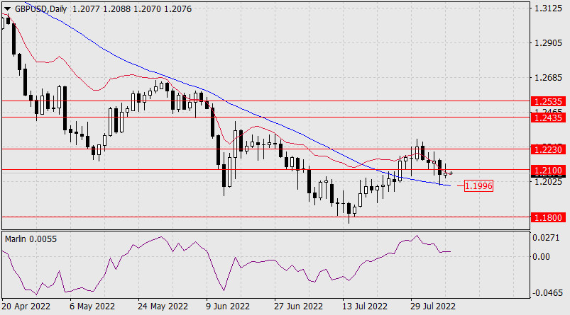 Прогноз по GBP/USD на 9 августа 2022 годаИнстаФорекс - Instaforex, 3 года назад Фунт стерлингов проторговался в понедельник в диапазоне 90 пунктов, закрытие дня оказалось белой свечой в 10 пунктов. Технически это близко похоже на неопределённость фунта в выборе дальнейшего краткосрочного направления и тогда верхняя тень может интерпретироваться как неудачная попытка в борьбе с сопротивлениями линии баланса и целевого уровня 1.2100. Осциллятор Марлин движется горизонтально над нулевой линией, разделяющей области растущей и понижающейся тенденций. После неудачной попытки подрасти цена теперь попытается снизиться. Ближайшая цель 1.1996 – индикаторная линия Крузенштерна. Уход под данную поддержку открывает цель 1.1800.
