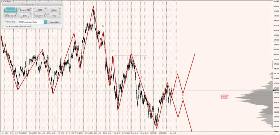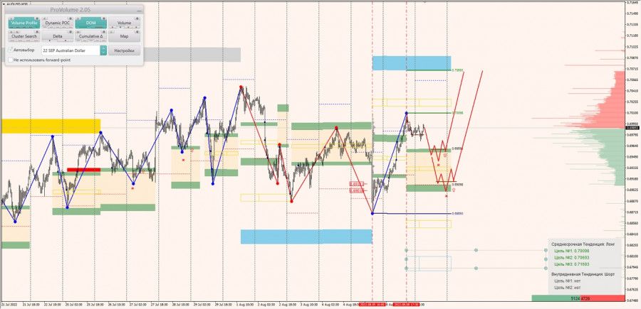Среднесрочная тенденция: в лонг. Максимальное скопление объемов среднесрочной тенденции расположено в диапазоне по котировкам 0.69018-0.69111. В настоящий момент по паре совершаются инвестиционные операции выше, указывая на силу покупателей.