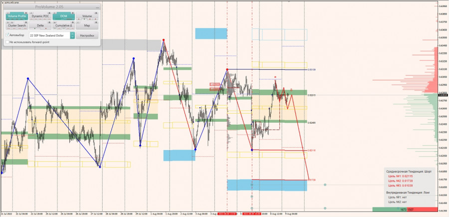 Среднесрочная тенденция: в шорт. Максимальное скопление объемов среднесрочной тенденции расположено в диапазоне по котировкам 0.62897-0.62955. В настоящий момент по паре совершаются инвестиционные операции ниже, указывая на силу продавцов.