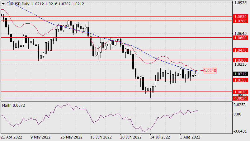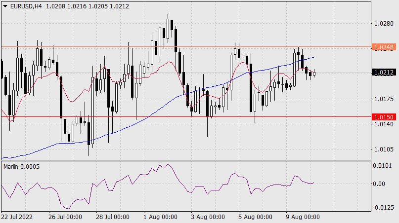 Прогноз по EUR/USD на 10 августа 2022 годаИнстаФорекс - Instaforex, 3 года назад Во вторник евро предпринял ещё одно ложное движение вверх, протестировав сопротивление индикаторной линии Крузенштерна дневного масштаба. Сегодня утром возобновляется снижение с целью преодоления поддержки 1.0150. Закрепление под уровнем открывает путь к 1.0020. Выход цены над вершину вторника (1.0248) позволит цене сделать попытку более высокого прыжка, вплоть до целевого уровня 1.0360.