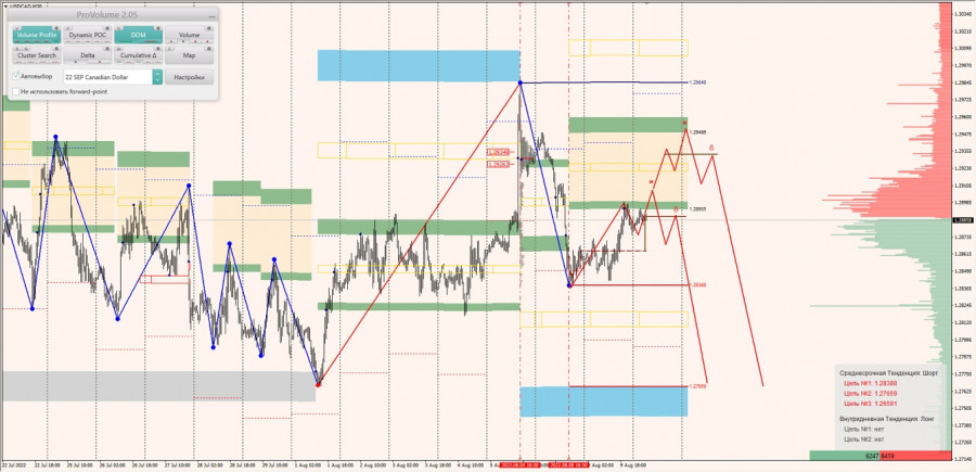 Среднесрочная тенденция: в шорт. Максимальное скопление объемов среднесрочной тенденции расположено в диапазоне по котировкам 1.29262-1.29348. В настоящий момент по паре совершаются инвестиционные операции ниже, указывая на силу продавцов.