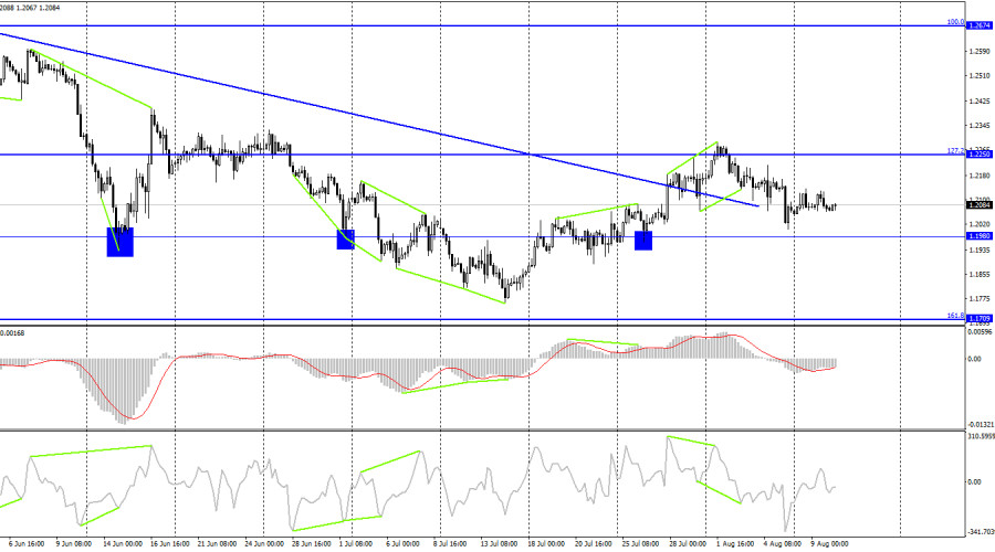 Добрый день, уважаемые трейдеры! На часовом графике пара GBP/USD во вторник выполнила закрепление над нисходящим трендовым коридором, но не смогла продолжить процесс роста. В понедельник и вторник котировки пары движутся горизонтально, и сейчас непонятно, что собираются делать трейдеры в ближайшие дни. Хочется верить, что отчет по инфляции в США расставит все точки над «i», однако я не слишком верю в это. Однако следует признать, что американская инфляция может стать основополагающим отчетом на ближайший месяц. От него будет зависеть то, насколько будет повышена процентная ставка ФРС в следующем месяце. А от понимания этого зависит то, возобновит ли процесс роста американский доллар. На часовом графике картина сейчас совсем неприглядная, поэтому рекомендую перейти на 4-часовой, где хотя бы более или менее понятно, что вообще происходит. На часовом же графике следует ждать толковых сигналов: закрепления над/под важными уровнями или же образование новых коридоров/линий тренда. Если трейдеры действительно ждут информационного фона на этой неделе, чтобы торговать британца более активно, то у них будет всего лишь два шанса на это. Сегодня отчет по инфляции в США, в пятницу – отчет по ВВП в Великобритании. С моей точки зрения, инфляция в США останется сильной, то есть не ниже 8,9%. А ВВП в Великобритании по ожиданиям трейдеров должен снизиться во втором квартале на 0,2%. На прошлой неделе Эндрю Бейли, губернатор Банка Англии, заявил, что экономика столкнется с рецессией во второй половине 2022 года. Поэтому, наверное, прогноз по ВВП на второй квартал будет выполнен. И следовательно, оба отчета должны поддержать американский доллар. Судя по картине на 4-часовом графике, рост американской валюты имеет большую вероятность. Таким образом, внимательно следим за статистикой сегодня и в пятницу и ждем нового падения британца. На 4-часовом графике пара выполнила отбой от уровня коррекции 127,2% - 1,2250 и продолжает процесс падения в направлении уровня 1,1980. Отбой курса пары от этого уровня позволит ожидать разворот в пользу британца и некоторый рост в направлении уровня 1,2250. Закрепление котировок под 1,1980 повысит шансы на продолжение падения в направлении следующего уровня Фибо 161,8% - 1,1709. Назревающих дивергенций сегодня не наблюдается ни у одного индикатора. Отчет Commitments of Traders (COT):