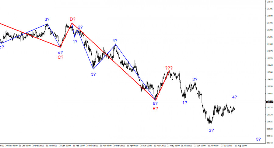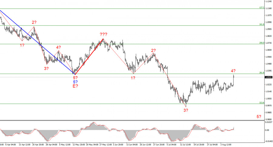 Анализ EUR/USD. 10 августа. Рынок шокирован падением инфляции в СШАИнстаФорекс - Instaforex, 3 года назад Волновая разметка 4-часового графика для инструмента Евро/Доллар на данный момент по-прежнему не требует внесения коррективов, несмотря на то что повышение котировок в рамках предполагаемой волны 4 откровенно затянулось. Новая волновая разметка пока не учитывает восходящую волну, отмеченную жирной красной линией. Вся волновая структура может усложниться еще раз и в этом минус волнового анализа, так как любая структура всегда может принять более сложный и протяженный вид. Сейчас предположительно продолжается построение восходящей волны, которая может быть волной 4 нового понижательного участка тренда. Если это предположение верно, то инструмент в ближайшее время должен завершить ее и начать построение волны 5. Предполагаемая волна 4 приняла уже пяти волновой вид, но все еще может быть именно волной 4. Неудачная попытка прорыва отметки 1,0356, что приравнивается к 261,8% по Фибоначчи может указать на завершение построения коррекционной волны. Если и эта отметка не сдержит повышение инструмента, то вся волновая картина может потребовать внесения изменений, так как пик волны 4 зайдет за лоу волны 1. Но даже в этом случае волновая разметка может сохранить свою целостность, но при этом она уже не будет считаться импульсной. Американская инфляция начала снижаться. Не случайность ли?Инструмент Евро/Доллар в среду повысился на 110 базовых пунктов. Безусловно, таким укреплением европейская валюта обязана отчету по американской инфляции, который вышел буквально час назад. Именно за этот час спрос на доллар очень сильно снизился, что и позволило евро вырасти более чем на 100 пунктов. Напомню, что в первые два дня недели инструмент был практически обездвижен на фоне отсутствия любого новостного фона. Теперь важно понять, как себя будет вести рынок далее. Сегодня мы стали свидетелями возможного первого снижения инфляции в длительном процессе возвращения к целевому уровню 2,0%. Но что, если падение роста цен в июле – это случайность? Напомню, что некоторые члены FOMC высказались на прошлой неделе в пользу того, что пиковые значения инфляции еще не пройдены. В Великобритании ждут дальнейшего повышения инфляции до 13% и готовятся к рецессии. В Америке же, если теперь начнется замедление индекса потребительских цен каждый месяц, все получится как-то слишком просто и гладко. Помимо этого, я считаю, что ФРС не откажется от своего плана по доведению процентной ставки до 3,5-4,0%. Лишь четвертое или пятое ужесточение денежно-кредитной политики привело к тому, что инфляция замедлилась. Но это ведь не гарантирует падение ИПЦ каждый следующий месяц. Инфляция может теперь оставаться около 8% годовых, что тоже никак не устраивает ФРС. Поэтому я считаю, что FOMC будет продолжать повышать ставку хотя бы до тех пор, пока ИПЦ не снизиться до 4-5%. В этом случае спрос на американскую валюту еще может вырасти, что позволит выстроить необходимую нам волну 5 в составе нисходящего участка тренда. После завершения этого участка инструмент может переходить к построению восходящего участка, нам главное вовремя определить, когда он начнется. Сейчас – еще не время, не лучшее время. Общие выводыИсходя из проведенного анализа, я делаю вывод, что построение нисходящего участка тренда продолж