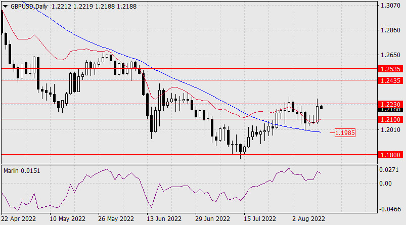 Прогноз по GBP/USD на 11 августа 2022 годаИнстаФорекс - Instaforex, 3 года назад Британский фунт, как и другие мировые валюты, на вчерашних данных по инфляции в США показал чрезмерное укрепление. Был перекрыт верхней тенью дневной свечи целевой бычий уровень 1.2230, теперь цена немного откатывает от него.