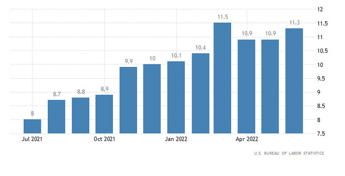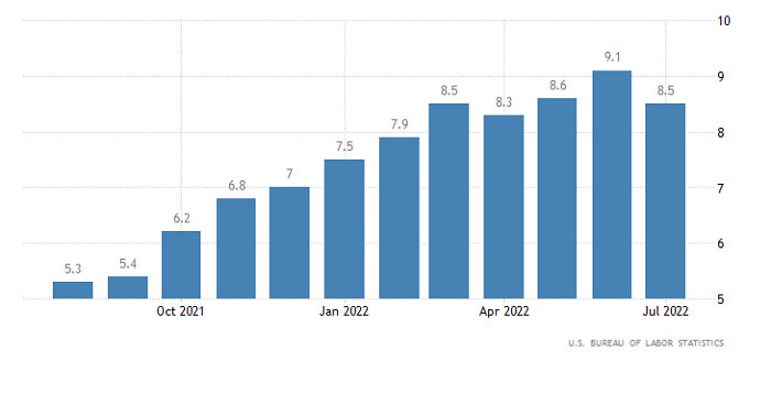 Горящий прогноз по GBP/USD от 11.08.2022ИнстаФорекс - Instaforex, 3 года назад По самым оптимистичным прогнозам инфляция в Соединенных Штатах должна была снизиться с 9,1% до 8,7%. Тогда как основной прогноз основывался на ее стабильности. Но по факту все оказалось совершенно иначе, так как инфляция замедлилась до 8,5%, что стало полной неожиданностью, приведшей в итоге к резкому ослаблению доллара. А причина невероятно проста - раз уж инфляция замедляется гораздо активнее нежели ожидалось, то Федеральная Резервная Система вполне может снизить темпы повышения процентных ставок. Главная идея сейчас заключается в том, что в сентябре ставку рефинансирования повысят лишь на 50 базисных пунктов, а не 75 как предполагалось ранее. Инфляция (Соединенные Штаты): Сегодня в Соединенных Штатах публикуется индекс цен производителей, который должен не только подтвердить вчерашние данные по инфляции, но еще указать на ее дальнейшее снижение. Индекс может снизиться с 11,3% до 10,9%. Учитывая что речь идет об опережающем для инфляции показателе, то это еще больше убедит рынок в том, что американский регулятор будет повышать процентные ставки уже не так активно. Индекс цен производителей (Соединенные Штаты): Однако, все что касается процентных ставок, это ничто иное как домыслы и предположения. И далеко не факт, что последние данные по инфляции на что-то серьезно повлияют. Практически сразу же после публикации данных по инфляции свой комментарий по данному вопросу дал Нил Кашкари, глава Федерального резервного банка Миннеаполиса. И по его словам, замедление инфляции ничего не меняет. И как только рынок осмыслит его слова, доллар вновь начнет укрепляться. Курс английской валюты по отношению к доллару США подскочил в стоимости примерно на 180 пунктов в ходе спекулятивного ралли. Вследствие чего котировка вернулась в район локального максимума действующего коррекционного хода. Технический инструмент RSI H1 и H4 за счет спекулятивного скачка оказался в пределах зоны перекупленности, что указала на перегрев длинных позиций. В это время индикатор RSI D1 пересек среднюю линию 50 снизу вверх, что вновь указало на сигнал о смене торговых интересов. Скользящие линии MA на индикаторе Alligator H4 сменили направление снизу вверх, что соответствует недавнему ценовому импульсу. Alligator D1 имеет пересечения между линиями MA, этот сигнал указывает на замедление нисходящего тренда. На торговом графике дневного периода наблюдается коррекционный ход в структуре нисходящего тренда. Сигнал о смене среднесрочного тренда отсутствует. Ожидания и перспективы В качестве сопротивления на пути спекулянтов стал ценовой район 1.2250/1.2300, где возникло сокращение объема длинных позиций. Ввиду локальной перекупленности фунта стерлингов в краткосрочном периоде на рынке возник откат. В данной ситуации в качестве переменной опоры может служить уровень 1.2155, куда в ходе отката может прийти котировка. Восходящий сценарий будет рассмотрен трейдерами после перегруппировки торговых сил, в виде отката. Первичный сигнал к покупке фунта может возникнуть в случае возвращения цены выше значения 1.2250. Комплексный индикаторный анализ в краткосрочном и внутридневном периодах имеет сигнал к продаже за счет стадии отката. Индикаторы в среднесрочном периоде имеют переменный сигнал, за счет замедления нисходящего тренда. Мат