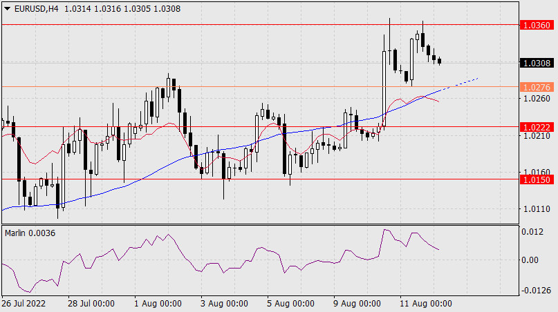 Прогноз по EUR/USD на 12 августа 2022 годаИнстаФорекс - Instaforex, 3 года назад Вчера евро ещё раз попытался атаковать уровень сопротивления 1.0360 (минимум 15 июня), попытка оказалась неудачной, откат усилился. Осциллятор Марлин уже разворачивается вниз в положительной области, а цене нужно преодолеть поддержку индикаторной линии Крузенштерна (1.0222) и тогда начнётся уже среднесрочное понижение евро. Первая цель 1.0150.