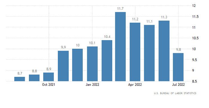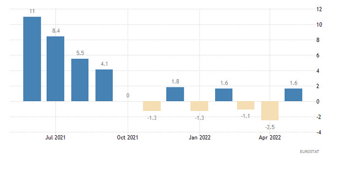 Горящий прогноз по EUR/USD от 12.08.2022ИнстаФорекс - Instaforex, 3 года назад Индекс цен производителей в Соединенных Штатах снизился с 11,3% до 9,8%, что оказалось заметно меньше прогноза в 10,9%. И это еще больше убедило рынки в том, что в сентябре Федеральная Резервная Система повысит ставку рефинансирования всего лишь на 50 базисных пунктов, и вновь подстегнуло рост единой европейской валюты. Эти предположения подтвердила и Мэри Дэли из Федерального Резервного Банка Сан-Франциско. Однако, вместе с тем она отметила, что пока рано говорить о победе над инфляцией, так как сохраняется риск возобновления ее роста. Что к слову противоречит заявлениям о более скромном повышении процентных ставок. Тем не менее единая европейская валюта смогла в очередной раз усилить свои позиции. Индекс цен производителей (Соединенные Штаты): И не стоит списывать со счетов необходимость локальной коррекции, после столь резкого и стремительного роста. Тем более, что сегодня у единой европейской валюты будет повод для снижения. Темпы роста промышленного производства в зоне евро могут замедлиться с 1,6% до 0,8%. Хотя в текущих реалиях, особенно с учетом ситуации с энергоносителями, любой рост промышленности является чем-то вроде чуда. Тем не менее, замедление промышленного производство станет отличным поводом для коррекции. Промышленное производство (Европа): Валютная пара EURUSD в ходе отката достигла верхней границы ранее пройденного флета 1.0150/1.0270, где возникло сокращение объема коротких позиций. Вследствие этого на рынке возник отскок, где покупателям вновь удалось вернуть курс евро в район локального максимума действующего коррекционного хода. Технический инструмент RSI H4 движется в верхней области индикатора 50/70, что указывает на восходящий интерес среди участников рынка. RSI D1 впервые с начала июня пересек среднюю линию 50 снизу вверх, что указывает на пролонгацию действующего коррекционного хода. Скользящие линии MA на Alligator H4 направленный вверх, что соответствует восходящему настрою трейдеров. Alligator D1 находится на этапе пересечения линий МА, что указывает на замедление нисходящего тренда. Ожидания и перспективы Восходящий настрой все еще актуален на рынке, по этой причине удержание цены выше значения 1.0350 в четырехчасовом периоде приведет к последующему построению коррекционного хода. В случае совпадения прогноза курс евро поэтапно может вырасти до значений 1.0500–1.0650. Нисходящий сценарий будет рассмотрен трейдерами в случае возвращения цены ниже значения 1.0200 в четырехчасовом периоде. Комплексный индикаторный анализ имеет сигнал к покупке в краткосрочном и внутридневном периодах ввиду движения цены на уровнях локального максимума коррекции. Технические инструменты в среднесрочном периоде имеют переменный сигнал ввиду замедления нисходящего тренда. Материал предоставлен компанией InstaForex - www.instaforex.com |