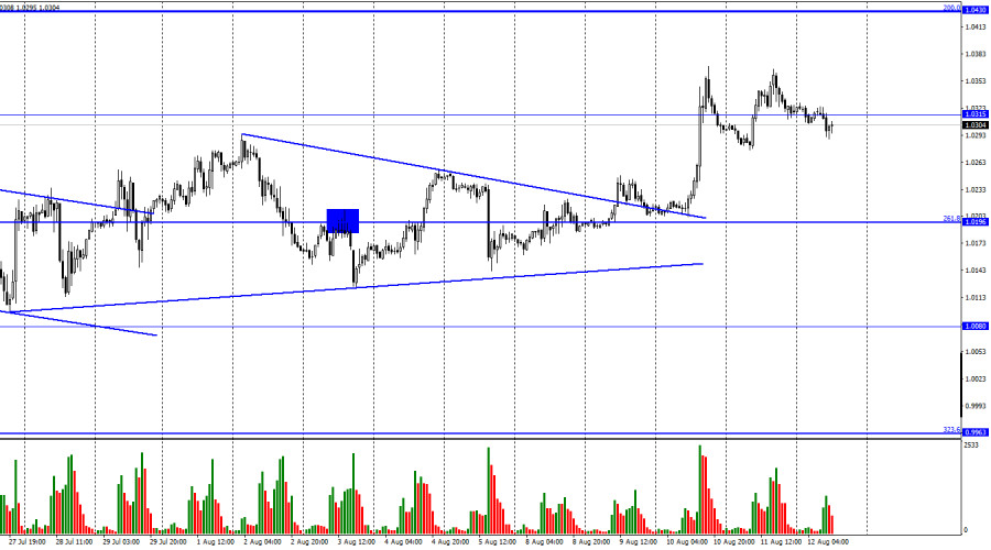 EUR/USD. 12 августа. Евро в раздумьях, «голубиный» сценарий трейдеров не сбываетсяИнстаФорекс - Instaforex, 3 года назад Добрый день, уважаемые трейдеры! Пара EUR/USD в четверг выполнила новый разворот в пользу валюты США и начала новое падение с закреплением под уровнем 1,0315. Таким образом, падение евровалюты теперь может продолжаться в направлении уровня 1,0196, откуда на этой неделе и «стартовала» пара перед выходом отчета по инфляции в США. На этой неделе все крутилось вокруг одного только этого отчета. Отмечу, что вполне справедливо, так как других важных событий и новостей не было. Если в среду трейдеры активно покупали евро, так как расценили падение инфляции как сигнал к переходу к «голубиной» политике ФРС, то в четверг и пятницу они начали менять свою точку зрения. Давайте рассмотрим этот момент подробнее. Тот факт, что инфляция в США начала замедляться, говорит о возможном снижении темпов повышения процентной ставки ФРС. Всего лишь о снижении темпов, это важно понимать! ФРС не собирается отказываться от ужесточения денежно-кредитной политики, поэтому трейдеры в среду сделали попросту неверные выводы. Доллар мог упасть на фоне перехода от «ястребиной» политики к «голубиной», только вот никакого перехода не было. Ставка все также будет повышаться, где же тут «голубиный» подход? Подумав два дня, быки решили пока отступить с рынка, а медведи могут перехватить у них инициативу. Также за последние два дня сразу несколько голосующих членов денежно-кредитного комитета ФРС заявили, что инфляция находится лишь в самом начале долгого пути к 2%. По их словам, ФРС не собирается отказываться от ужесточения ДКП, и уже начали звучать цифры около 4-4,5% в качестве максимального значения ставки, которого должно хватить для возвращения инфляции к целевому уровню. Напомню, что ранее речь шла о 3-3,5%. Еще раз спрошу, где же тут «голубиный» подход? Учитывая всю новую информацию, я опять считаю, что падение пары евро-доллар наиболее точно будет отображать информационный фон текущего времени. Промышленное производство в Евросоюзе (отчет вышел утром) оказалось лучше ожиданий, но никто на него не обратил внимания. На 4-часовом графике пара продолжает оставаться над уровнем 127,2% - 1,0173 и выполнила рост к верхней линии нисходящего трендового коридора, но закрепление над ним не смогла выполнить. Таким образом, из бокового коридора котировки выбрались, но падение может возобновиться в направлении уровня коррекции 161,8% - 0,9581, если трейдерам-быкам не удастся закрыть пару над нисходящим коридором, который все еще характеризует текущее настроение трейдеров, как «медвежье». Назревающих дивергенций сегодня не наблюдается ни у одного индикатора. Отчет Commitments of Traders (COT):
