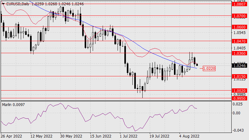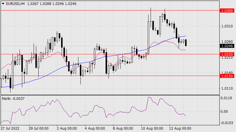 Прогноз по EUR/USD на 15 августа 2022 годаИнстаФорекс - Instaforex, 3 года назад Не смотря на сильный импульс, полученный евро 10-го числа, цена так и не преодолела техническое сопротивление 1.0360 – минимум 15 июня, к текущему моменту уже вернувшись под индикаторную линию баланса дневного масштаба и приближающуюся к поддержке линии Крузенштерна (1.0220). Уход котировки под линию Крузенштерна вернёт евро к нисходящему направлению в среднесрочной перспективе. Первая цель 1.0150, уход под которую усилит тенденцию. Далее цель 1.0020. Осциллятор Марлин ещё не растратил растущего потенциала, понадобится день, чтобы оценить силу его разворота. Для нейтрализации нисходящего импульса цене нужно будет сделать весьма много – выйти над уровень сопротивления 1.0360.