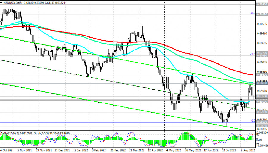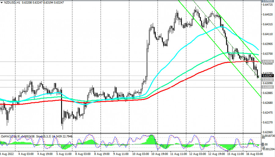 NZD/USD: технический анализ и торговые рекомендации на 16.08.2022ИнстаФорекс - Instaforex, 3 года назад Как мы отметили в нашем сегодняшнем «Фундаментальном анализе», после вчерашнего роста сегодня укрепление американского доллара возобновилось с открытия торгового дня. Американский доллар укрепляется, в том числе, и против основных сырьевых валют. В частности, пара NZD/USD (на момент публикации данной статьи) торгуется в зоне между важными краткосрочными уровнями, поддержки 0.6315 (ЕМА50 на дневном графике), 0.6300 (ЕМА200 на 4-часовом графике) и сопротивления 0.6354 (ЕМА200 на 1-часовом графике). Как мы предположили, пробой в ту или иную сторону определит дальнейшее направление динамики пары. В целом же преобладает нисходящая динамика NZD/USD, в то время как пара остается в зоне долгосрочного медвежьего рынка, ниже ключевых уровней сопротивления 0.6770 (ЕМА200 на недельном графике), 0.6560 (ЕМА200 на дневном графике). Учитывая общий восходящий тренд USD и нисходящую динамику NZD/USD, логичнее предположить пробой уровней поддержки 0.6315, 0.6300 и дальнейшее снижение вглубь нисходящего канала на недельном графике. Его нижняя граница проходит вблизи отметок 0.6000, 0.5900, которые станут ориентиром в случае реализации нашего основного сценария. В альтернативном сценарии пробой уровней сопротивления 0.6354, 0.6380 станет сигналом для возобновления восходящей коррекции и длинных позиций с целью на уровне сопротивления 0.6480 (ЕМА144 на дневном графике). Однако лишь пробой ключевого уровня сопротивления 0.6770 вновь выведет пару в зону долгосрочного бычьего рынка. В целом преобладает нисходящая динамика NZD/USD, что делает предпочтительными короткие позиции. *) об особенностях торговли NZD/USD также см. в статье NZD/USD: валютная пара (характеристики, рекомендации)). Уровни поддержки: 0.6315, 0.6300, 0.6200, 0.6105, 0.6100, 0.6000, 0.5900 Уровни сопротивления: 0.6354, 0.6380, 0.6400, 0.6480, 0.6500, 0.6560, 0.6745, 0.6770