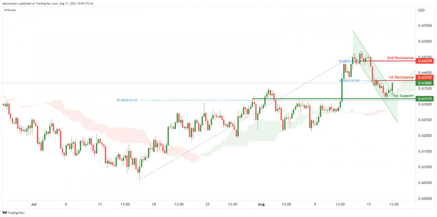 NZD/USD: возможен бычий отскок. Прогноз на 17 августа 2022ИнстаФорекс - Instaforex, 3 года назад На 4-часовом графике пара NZD/USD пробила нисходящий канал и сейчас движется выше Облака Ишимоку, что указывает на бычий импульс. Ожидается, что цена может укрепиться от 1-го уровня сопротивления 0.63757, соответствующего 38.2% уровню коррекции Фибоначчи, до 2-го уровня сопротивления 0.64379, который соответствует 78.6% уровню коррекции Фибоначчи. В качестве альтернативы цена может упасть до 1-го уровня поддержки 0.63175, соответствующего 38.2% уровню коррекции Фибоначчи и линии поддержки. Торговая рекомендация Вход: 0.63757 Условия для входа: 38.2% уровень коррекции Фибоначчи Тейк-профит: 0.64379 Условия для фиксации прибыли: уровень коррекции Фибоначчи 78.6% Стоп-лосс: 0.63175 Условия для активации ордера стоп-лосс: 38.2% уровень коррекции Фибоначчи и линия поддержки Материал предоставлен компанией InstaForex - www.instaforex.com |