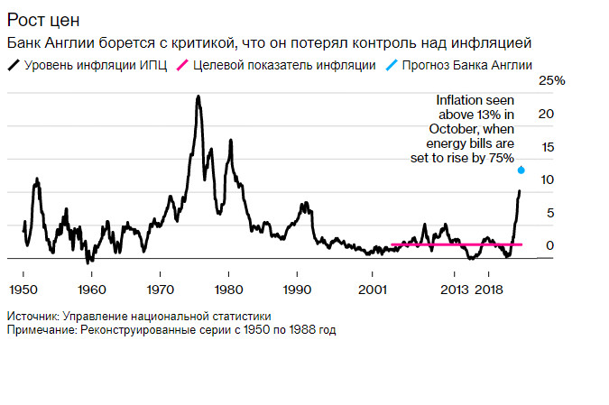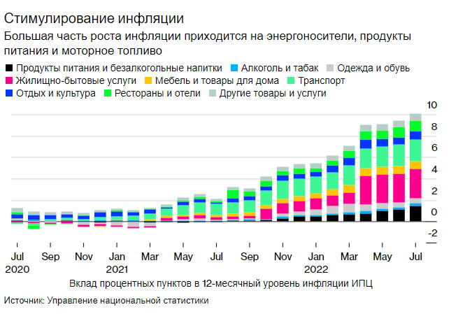 Двузначная инфляция в Британии и рецессия на 2-3 годаИнстаФорекс - Instaforex, 3 года назад Инфляция в Великобритании ускорилась сильнее, чем ожидалось, в прошлом месяце до максимума за 40 лет, усилив давление на потребителей и усилив давление на действия со стороны правительства и Банка Англии. Индекс потребительских цен вырос на 10,1% в июле по сравнению с предыдущим годом после роста на 9,4% месяцем ранее, сообщило в среду Управление национальной статистики. Показатель оказался выше, чем ожидали как Банк Англии, так и экономисты частного сектора. Наибольший вклад в месячный рост внесли растущие цены на продукты питания, что указывает на то, что инфляционное давление распространяется не только на энергоносители. Инвесторы перешли к ценообразованию в 2 процентных пункта повышения ключевой ставки Банка Англии до 3,75% к маю следующего года. "Цены на продукты питания заметно выросли, особенно на хлебобулочные изделия, молочные продукты, мясо и овощи, что также отразилось на повышении цен на вынос, - сказал Грант Фитцнер, главный экономист ONS. - Рост цен на другие основные товары, такие как корм для домашних животных, рулоны туалетной бумаги, зубные щетки и дезодоранты, также привел к росту инфляции в июле". Эндрю Сентанс, бывший член правления Банка Англии, сказал, что ключевую ставку, возможно, придется повысить до 3% или 4%, потому что политики "отстали от графика". Базовая инфляция - без учета цен на энергоносители, продукты питания, алкоголь и табак - в июле ускорилась до 6,2% по сравнению с прошлым годом, что выше ожидаемого экономистами показателя в 5,9%. Эти цифры усугубляют кризис стоимости жизни, поскольку заработная плата продолжает падать из-за роста цен на товары и услуги всех видов. Банк Англии ожидает, что инфляция превысит 13% в октябре, когда произойдет сброс предельных цен на энергоносители, а губернатор Эндрю Бейли дал понять, что он готов к дальнейшему повышению процентных ставок. Инвесторы ожидают очередного повышения на 50 базисных пунктов в сентябре. Претенденты, стремящиеся заменить Бориса Джонсона на посту премьер-министра, обещают дальнейшую помощь тем, кто с трудом оплачивает свои счета. "Рост инфляции действительно оказывает давление на реальную заработную плату, даже при сильном росте заработной платы, - сказал Майк Белл, стратег по глобальному рынку в JP Morgan Asset Management. - А с увеличением счетов за электроэнергию в октябре ситуация будет только ухудшаться". Главный британский фондовый индекс, технически имеет огромный потенциал на снижение: Экономисты становятся все более пессимистичными в отношении Великобритании, поскольку риск рецессии сейчас рассматривается как гораздо более вероятный, из-за растущего ценового давления. Банк Англии ожидает, что рецессия начнется в четвертом квартале и продлится до начала 2024 года. Центральный банк ожидает, что инфляция превысит 13% позже в этом году, когда регуляторы позволят счетам за электроэнергию снова вырасти. Это стало бы худшим показателем с сентября 1980 года, когда правительство Маргарет Тэтчер изо всех сил пыталось взять под контроль спираль роста заработной платы и цен. Отдельные данные показали, что ценовое давление на трубопроводах, похоже, ослабевает: цены на топливо и сырье выросли всего на 0,1% в июле, что является наименьшим месячным увеличением с декабря. В основном это было