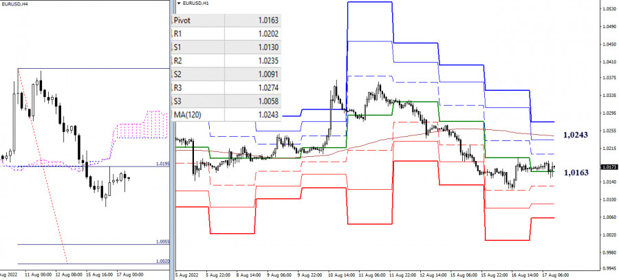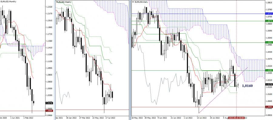 EUR/USD и GBP/USD 17 августа – рекомендации технического анализаИнстаФорекс - Instaforex, 3 года назад EUR/USD Старшие таймфреймы Вчера, в результате встречи с поддержкой дневного среднесрочного тренда (1,0160), наметилось торможение. Сформирована свеча неопределённости. Для игроков на понижение на ближайшую перспективу остаётся главной задачей ликвидация дневного золотого креста Ишимоку, его заключительный уровень сейчас находится на рубеже 1,0111. Если инициативу перехватят игроки на повышение, то ближайшие сопротивления для них расположены сегодня на 1,0210 (дневной Фибо Киджун) – 1,0246 (дневной краткосрочный тренд) – 1,0285 (недельный краткосрочный тренд). Н4 – Н1 На младших таймфреймах пауза сформировала длительную коррекцию. Пара находится в зоне притяжения центрального Пивот-уровня (1,0163), но при этом преимущества продолжают оставаться на стороне игроков на понижение. В случае продолжения снижения, в качестве ориентиров внутри дня можно будет отметить поддержки классических Пивот-уровней (1,0130 – 1,0091 – 1,0058). Если же игроки на повышение продолжат подъём и закрепятся выше недельной долгосрочной тенденции (1,0243), то может наступить смена приоритетов и баланса сил. *** GBP/USD Старшие таймфреймы Тестирование зоны поддержек 1,2000 (психологический уровень) – 1,2026 (дневной среднесрочный тренд) – 1,2046 (недельный краткосрочный тренд) привело к торможению и формированию дневного отбоя. В настоящий момент пара тестирует сопротивление дневного краткосрочного тренда (1,2140). Закрепление выше позволит надеяться на подтверждение и развитие дневной коррекции. Следующей задачей в этом случае станет выход в бычью зону относительно дневного облака (1,2212). Н4 – Н1 Игроки на повышение реализовали коррекционный подъём и сейчас приступили к тестированию сопротивления недельной долгосрочной тенденции (1,2136). Закрепление выше и разворот мувинга может изменить действующий баланс сил в пользу усиления бычьих настроений. Далее сопротивление могут оказать классические Пивот-уровни, расположенные на 1,2182 (R2) и 1,2248 (R3). При возобновлении снижения поддержками скорей всего послужат 1,2028 – 1,1962 – 1,1918 (классические Пивот-уровни). *** При техническом анализе ситуации используются: старшие таймфреймы – Ichimoku Kinko Hyo (9.26.52) + уровни Фибо Киджун Н1 – Pivot Points (классические) + Moving Avarage 120 (недельная долгосрочная тенденция) Материал предоставлен компанией InstaForex - www.instaforex.com |