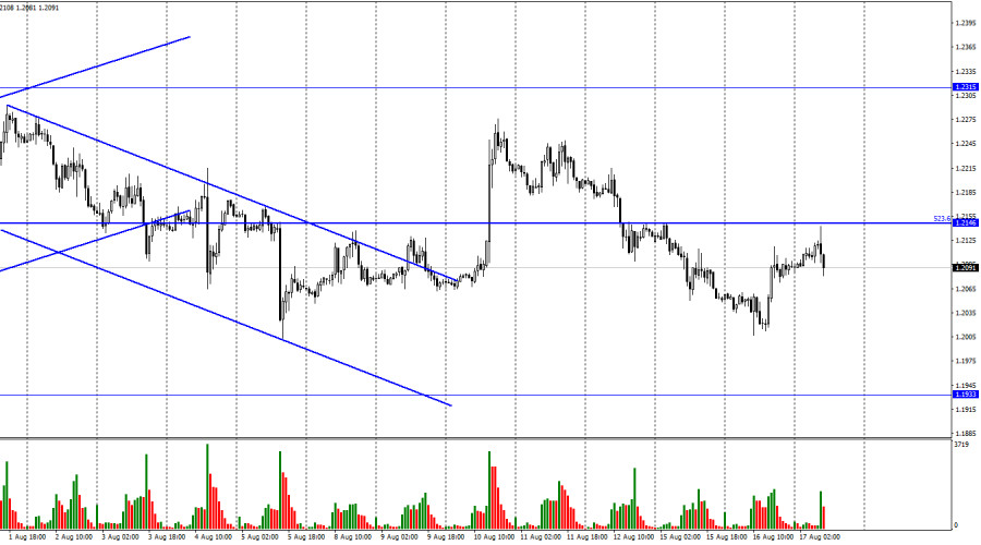 Добрый день, уважаемые трейдеры! На часовом графике пара GBP/USD во вторник выполнила новый разворот в пользу американской валюты и начала новый процесс падения. Закрепления над уровнем коррекции 523,6% - 1,2146 не произошло, потому трейдеры-медведи пока не покидали рынок. Сегодня утром вышел важный отчет по инфляции в Великобритании за июль, который показал новое увеличение до 10,1%. Напомню, что ранее Банк Англии поднял свою процентную ставку до 1,75%, но, как видим, это никакого положительного эффекта не принесло. Ведь британский регулятор, как и другие центральные банки, ужесточает денежно-кредитную политику ради снижения инфляции. Получается, что в данное время Банк Англии делает это напрасно, потому что инфляция как росла, так и растет. Безусловно, большой вопрос, сколько бы сейчас составлял ИПЦ, если регулятор не повышал бы ставку. Вероятно, уже около 15%. Но, по моему скромному мнению, между 10% и 15% разница невелика. А вот британская экономика может очень пострадать от текущих безрезультатных действий центрального банка обуздать ИПЦ. Напомню, что сейчас проходят выборы нового премьер-министра, и это событие уже омрачается ужасающими прогнозами от Эндрю Бейли, который заявил о рецессии, которая начнется в конце этого года. Если вспомнить последний отчет по ВВП, который был отрицательным, то рецессия технически уже началась. В это же время Банк Англии продолжает охлаждать экономику повышением процентной ставки, а того, ради чего он повышает ставку, - снижение инфляции – добиться не может. Со всех сторон британец находится в удручающем положении. Сегодня вечером в США будут опубликованы протоколы FOMC, в которых трейдеры будут стараться найти информацию о том, сколько членов комитета поддерживает повышение ставки шагом 0,75%. Или любую другую информацию, которая поможет им ответить на вопрос, какое решение может гипотетически быть принято на сентябрьском заседании. Обычно протоколы FOMC редко вызывают сильные движения, но сегодня может быть исключением. На 4-часовом графике пара выполнила падение к уровню 1,2008, отбой от него и некоторый рост в направлении коррекционного уровня 127,2% - 1,2250. Закрепление курса пары под уровнем 1,2008 сработает в пользу валюты США и возобновления падения в направлении следующего уровня коррекции 161,8% - 1,1709. Назревающих дивергенций сегодня нет ни у одного индикатора. Отчет Commitments of Traders (COT):