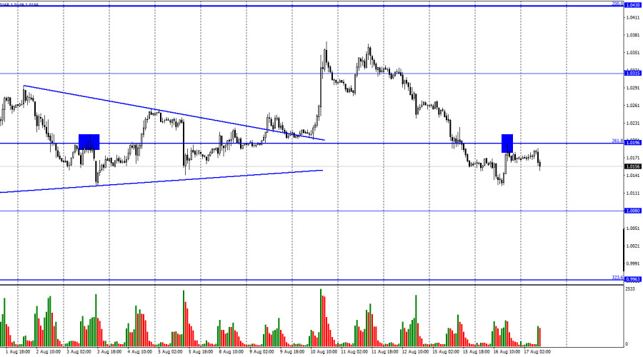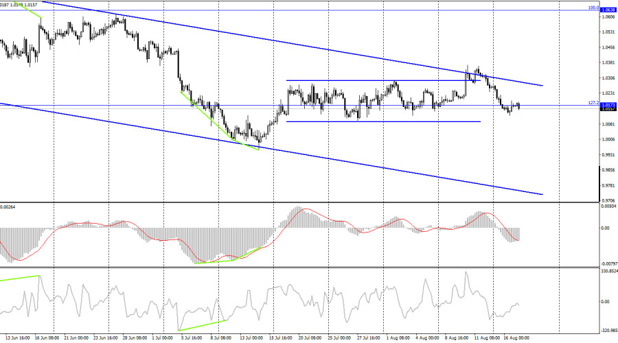 EUR/USD. 17 августа. Европейская экономика тоже на всех парах мчит к рецессииИнстаФорекс - Instaforex, 3 года назад Добрый день, уважаемые трейдеры! Пара EUR/USD во вторник выполнила возврат к уровню коррекции 261,8% - 1,0196, отбой от него и разворот в пользу американской валюты с возобновлением падения в направлении уровня 1,0080. Информационного фона в первые два дня недели не было никакого, а вот сегодня с самого утра начали поступать интересные новости. Они не касались напрямую европейской валюты. Инфляция в Великобритании выросла уже до 10,1%, что вызвало падение британца. А британец (по крайней мере, складывается такое впечатление) потянул за собой вниз европейца. На самом деле это довольно странно, так как отчет по британской инфляции имеет такое же отношение к евро, как европейская инфляция к фунту. Однако движения фунта и евро сегодня были просто одинаковыми, а падение обеих валют началось именно в то время, когда вышел отчет. В это же время в Евросоюзе назревает масштабный газовый кризис. Напомню, что Европа вознамерилась отказаться от российских нефти и газа и полностью модернизировать свои системы обеспечения энергией всех служб, структур, промышленности и потребителей. На это уйдут годы, поэтому Евросоюз отказывается от российских углеводородов постепенно. Нефть он старается заменить нефтью из других стран, а вот с газом проблем гораздо больше. Уже неоднократно официальные лица ЕС заявляли, что от российского газа Европа отказаться не сможет в одночасье. И даже в течение года или двух. Евросоюз также опасается, что Москва начнет «газовый шантаж», поэтому уже сейчас начал готовиться к зиме, сокращая потребление газа и закачивая по максимуму в газовые хранилища голубое топливо. Но даже при условии подготовки к зиме еще с лета многие экономисты считают, что Евросоюзу придется несладко в холодные месяцы года. Сократится производство, сократится потребление, что негативно отразится на ВВП и приведет к рецессии. Как видим, совсем не обязательно повышать процентную ставку, чтобы охладить экономику. Достаточно зависеть от поставок энергоносителей из других стран, которые теперь являются недружественными. На 4-часовом графике пара выполнила разворот в пользу валюты США и закрепление под уровнем коррекции 127,2% - 1,0173. Паре так и не удалось выполнить закрепление над нисходящим трендовым коридором, поэтому он продолжает характеризовать текущее настроение трейдеров, как «медвежье». Таким образом, процесс падения может быть продолжен в направлении уровня Фибо 161,8% - 0,9581. Назревающих дивергенций сегодня не наблюдается ни у одного индикатора. Отчет Commitments of Traders (COT):