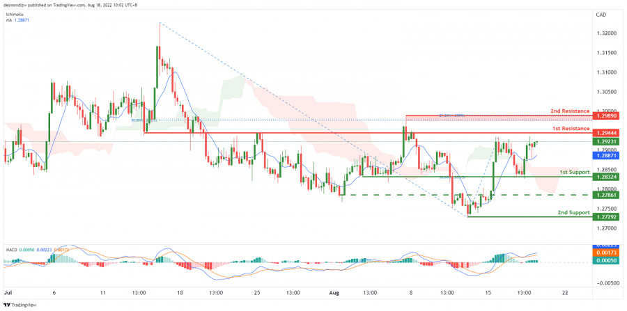 USD/CAD: возможен бычий отскок. Прогноз на 18 августа 2022ИнстаФорекс - Instaforex, 3 года назад На 4-часовом графике пара USD/CAD торгуется выше Облака Ишимоку и средней скользящей, а индикаторы MACD находятся выше нуля, что указывает на бычий импульс. Ожидается, что цена вырастет до 1-го уровня сопротивления 1.29444, соответствующего перекрытию, выступающему в качестве сопротивления. Если цена преодолеет 1-й уровень сопротивления, пара может подняться до 2-го уровня сопротивления 1.29890, соответствующего уровню свинг-хай, уровню расширения Фибоначчи -27.2% и уровню коррекции Фибоначчи 50%. В качестве альтернативы цена может упасть к 1-му уровню поддержки 1.28324, соответствующему уровню свинг-лоу и 50% уровню коррекции Фибоначчи. Если цена пробьет 1-й уровень поддержки, она направится ко 2-му уровню поддержки 1.27292, который соответствует уровню свинг-лоу. Также обратите внимание на промежуточную поддержку на уровне 1.27861, цена неоднократно тестировала эту область. Торговая рекомендация Вход: 1.29444 Условия для входа: перекрытие, выступающее в роли сопротивления Тейк-профит: 1.29890 Условия для фиксации прибыли: уровень свинг-хай, уровень расширения Фибоначчи -27.2% и уровень коррекции Фибоначчи 50% Стоп-лосс: 1.28324 Условия для активации ордера стоп-лосс: уровень свинг-лоу и 50% уровень коррекции Фибоначчи Материал предоставлен компанией InstaForex - www.instaforex.com |