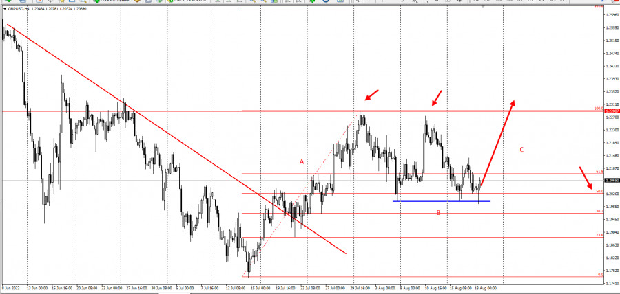 Торговая идея на рост GBPUSD. Ловушка продавцовИнстаФорекс - Instaforex, 3 года назад Добрый день, уважаемые трейдеры! Представляю вашему вниманию торговую идею по GBPUSD. Итак, после мощной лонговой инициативы второй половины июля инструмент зашёл в зону консолидации с границами 1,20-1,23. Сегодня произошёл ложный пробой нижней границы этого ценового канала, после которого есть вероятность продолжение восходящего тренда по инструменту: Фактически имеем трёхволновую структуру "АВС", где волной А выступает лонговая инициатива второй половины июля. |