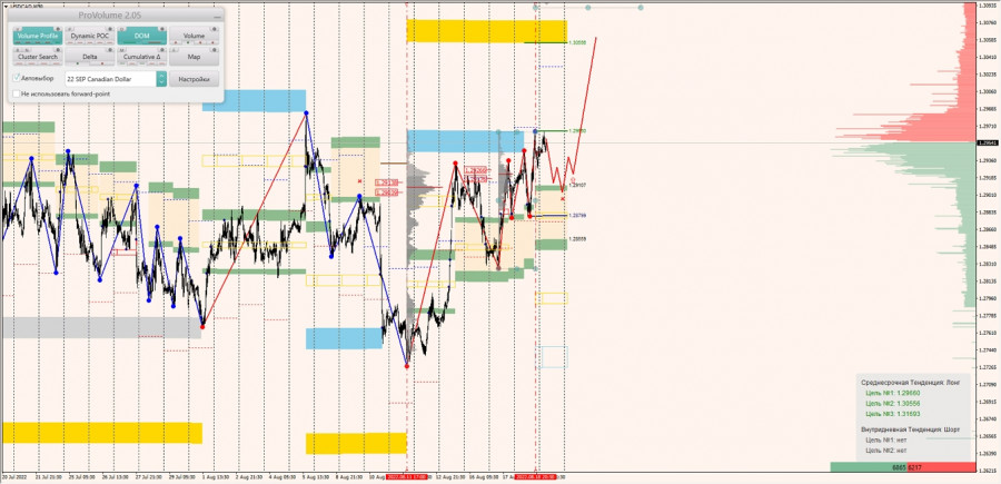 Среднесрочная тенденция: в лонг. Максимальное скопление объемов среднесрочной тенденции расположено в диапазоне по котировкам 1.29039-1.29138. В настоящий момент по паре совершаются инвестиционные операции выше, указывая на силу покупателей. Объемы последнего лонгового импульса по котировкам 1.29176-1.29265. В настоящий момент по паре совершаются инвестиционные операции выше, указывая на силу покупателей.
