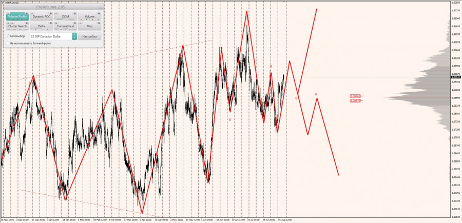 Долгосрочная тенденция: в шорт. Максимальное скопление объемов текущего контракта расположено в диапазоне по котировкам 1.28575-1.28762. В настоящий момент по паре совершаются инвестиционные операции выше, указывая на слабость продавцов.