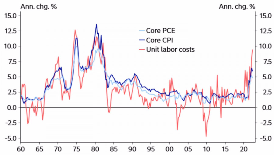 Доллар бьет не в бровь, а в глазИнстаФорекс - Instaforex, 3 года назад Сопротивление бесполезно! На фоне бушующего в Европе энергетического кризиса «быки» по EURUSD вынуждены бежать с поля боя. Основная валютная пара уверенно катится в сторону паритета, прекрасно понимая, что нащупать дно на его уровне во второй раз за 1,5 месяца вряд ли удастся. Евро помогла замедляющая американская инфляция, но как только инвесторы поняли, что ФРС продолжит повышать ставки, их внимание переключилось на экономики США и еврозоны. И вторая пока безнадежно проигрывает. Релизы данных по деловой активности за август должны подчеркнуть дивергенцию в росте ВВП. Эксперты Bloomberg ожидают от европейских индексов менеджеров по закупкам продолжения пике, в то время как ралли PMI в сфере услуг США докажет, что американская исключительность – не пустой звук. Эта статистика и релиз данных по индексу расходов на личное потребление, ключевому индикатору инфляции, отслеживаемому ФРС, станут главными событиями третьей недели августа в экономическом календаре. Впрочем, всех их наверняка затмит выступление Джерома Пауэлла в Джексон Хоуле. Рынок повел себя в отношении протокола июльского заседания FOMC как ребенок: он ничего не понял. Федрезерв продолжает бросать все силы на борьбу с инфляцией, но опасается, что перегнет палку. Он декларирует переход к политике зависимости от данных, о чем уже было известно после выступления главы центробанка на пресс-конференции. В итоге у Джерома Пауэлла появилась прекрасная возможность, чтобы все разжевать и объяснить, как в свое время делала Джанет Йеллен. В принципе, объяснять особо нечего. Замедление инфляции в США снижает потребность ФРС в усилении репрессий в отношении собственных экономики и рынка труда, однако у центробанка есть веские причины, чтобы продолжать повышать ставку по федеральным фондам и удерживать ее на высоком уровне в течение длительного периода. Как бы ни снизились темпы роста потребительских цен, базовая инфляция вряд ли рванет вниз со скоростью курьерского поезда. Как, впрочем, и зарплаты. Динамика инфляции и затрат на оплату труда в США Не факт, что core CPI в США достиг пика, а если он все-таки пройден, никто не даст гарантии, что текущей скорости монетарной рестрикции Федрезерва достаточно, чтобы вернуть инфляцию к таргету в 2%. Вероятнее всего, затраты по займам придется увеличить до 4-4,5%, а не до 3,7%, как в настоящее время ожидает срочный рынок. Для того чтобы отпраздновать победу над высокими ценами, требуется существенное замедление экономики, а его, вероятнее всего, не будет. Так что высокие ставки в Штатах – это всерьез и надолго. Вкупе с энергетическим кризисом в Европе и близостью экономики еврозоны к рецессии это рисует отнюдь не радужный сценарий для EURUSD. Технически на недельном графике пара пытается найти дно – сформировать точку 5 паттерна Волны Вульфа. Вероятнее всего, евро придется опуститься до $0,977-0,984, а возможно, и до $0,95-0,96, прежде чем отскочить вверх. Рекомендация по EURUSD – продавать. Материал предоставлен компанией InstaForex - www.instaforex.com |