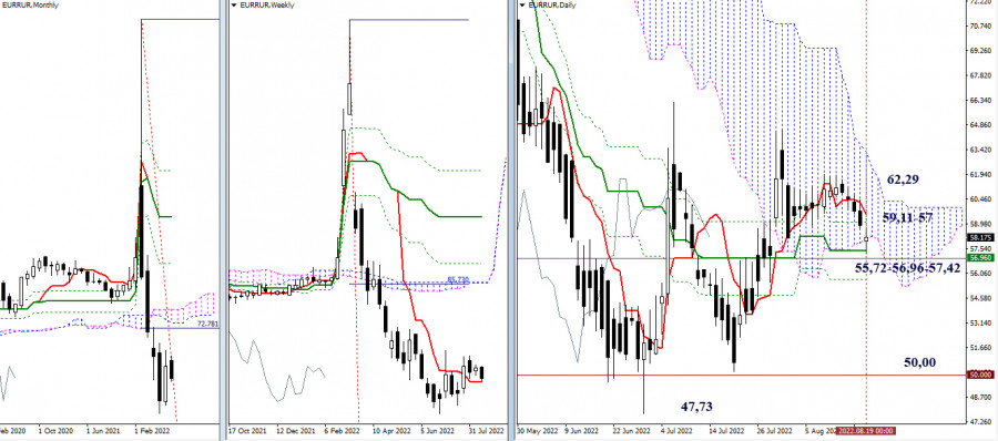 USD/RUR и EUR/RUR – итоги и перспективыИнстаФорекс - Instaforex, 3 года назад USD/RUR Пара не сумела пройти обозначенные поддержки 55,34 (минимальный экстремум прошлого) и 50,00 (психологический уровень), поэтому вынуждена была отступить. Сейчас длительная консолидация имеет своим центром притяжения недельный краткосрочный тренд (59,56). В этом же районе в настоящий момент находятся дневной крест (57,88 – 60,19) и дневное облако Ишимоку (60,15-71). Ликвидация дневного креста (57,88) откроет возможности для возврата к тестированию поддержек, не пройденных ранее ( 55,34 и 50,00). Выход за пределы дневного облака (60,71) в бычью зону сформирует новую повышательную цель. Дневная цель и сопротивления месячного облака (68,55 – 70,28) станут основными повышательными ориентирами для дальнейшего усиления бычьих настроений. *** EUR/RUR Игроки на понижение не сумели покорить рубеж 50,00. В результате пара ушла в коррекционный подъём, в котором находится уже несколько недель. За это время удалось закрепиться выше недельного краткосрочного тренда (56,96) и развернуть дневной крест Ишимоку. Данные обстоятельства сформировали действующую зону поддержек 57,42 (дневной среднесрочный тренд) – 56,96 (недельный краткосрочный тренд) – 55,72 (заключительный уровень дневного креста Ишимоку). Надёжное закрепление ниже может поспособствовать завершению коррекционного подъёма и спровоцировать новый этап снижения. Следующими понижательными ориентирами в этом случае станут 50,00 (психологический уровень) и 47,73 (минимальный экстремум). Перспективами игроков на повышение, если они сейчас сумеют организовать отбой от встреченных поддержек, являются дневные уровни (59,11 – 59,57) и верхняя граница дневного облака (62,29). Выход в бычью зону, относительно дневного облака Ишимоку, сформирует новую повышательную цель на пробой облака. *** При техническом анализе ситуации используются: старшие таймфреймы – Ichimoku Kinko Hyo (9.26.52) + уровни Фибо Киджун Материал предоставлен компанией InstaForex - www.instaforex.com |