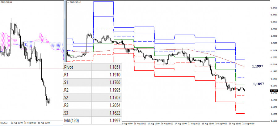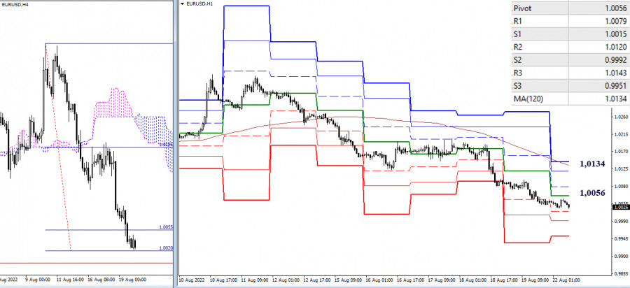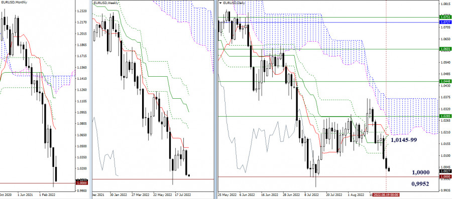 EUR/USD и GBP/USD 22 августа – рекомендации технического анализаИнстаФорекс - Instaforex, 3 года назад EUR/USD Старшие таймфреймы На прошлой неделе инициатива принадлежала игрокам на понижение, которые сумели организовать достаточно результативное снижение. В настоящий момент основной задачей является восстановление нисходящего тренда на самых старших временных интервалах. Для этого нужно преодолеть психологическую поддержку (1,0000) и закрепиться ниже минимального экстремума (0,9952). Ближайшую зону сопротивлений сейчас формируют, пройденные накануне, уровни дневного креста Ишимоку (1,0145 – 1,0196) и нижней границы дневного облака (1,0199). Н4 – Н1 На младших таймах преимущество на стороне игроков на понижение. На текущий момент они отработали понижательную цель на пробой облака Н4 (1,0020). Пробой цели и продолжение снижения откроет возможности для тестирования поддержек старших таймов 1,0000 и 0,9952, а также дополнительными ориентирами внутри дня могут служить поддержки классических Пивот-уровней (1,0015 – 0,9992 – 0,9951). Ключевые уровни младших таймфреймов сегодня расположены на 1,0056 (центральный Пивот-уровень дня) и 1,0134 (недельная долгосрочная тенденция). Промежуточные сопротивления можно отметить на 1,0079 (R2) и 1,0120 (R3). *** GBP/USD Старшие таймфреймы Четверг и пятница прошлой рабочей недели позволили игрокам на понижение достичь хорошего результата, приблизив их почти вплотную к минимальному экстремуму (1,1759) текущей восходящей коррекции. Восстановление нисходящего тренда вновь обозначит основным ориентиром для снижения минимум 2020 года, зафиксированный на 1,1411. В случае новой активности игроков на повышение основное значение будут иметь пройденные уровни, которые сейчас концентрируются в районе 1,2000 – 1,2046 (дневной крест + нижняя граница дневного облака + недельный краткосрочный тренд + психологический уровень). Н4 – Н1 Основные преимущества продолжают принадлежать игрокам на понижение, несмотря на текущее коррекционное торможение. При выходе из зоны коррекции и продолжении снижения внутридневными ориентирами будут служить поддержки классических Пивот-уровней (1,1766 – 1,1707 – 1,1622). При развитии коррекционного подъёма внимание игроков на повышение будет направлено на покорение ключевых уровней, которые сегодня выступают в роли сопротивлений – 1,1851 (центральный Пивот-уровень дня) и 1,1997 (недельная долгосрочная тенденция). Промежуточное сопротивление на этом пути можно отметить на 1,1910 (R1). *** При техническом анализе ситуации используются: старшие таймфреймы – Ichimoku Kinko Hyo (9.26.52) + уровни Фибо Киджун Н1 – Pivot Points (классические) + Moving Avarage 120 (недельная долгосрочная тенденция) Материал предоставлен компанией InstaForex - www.instaforex.com |