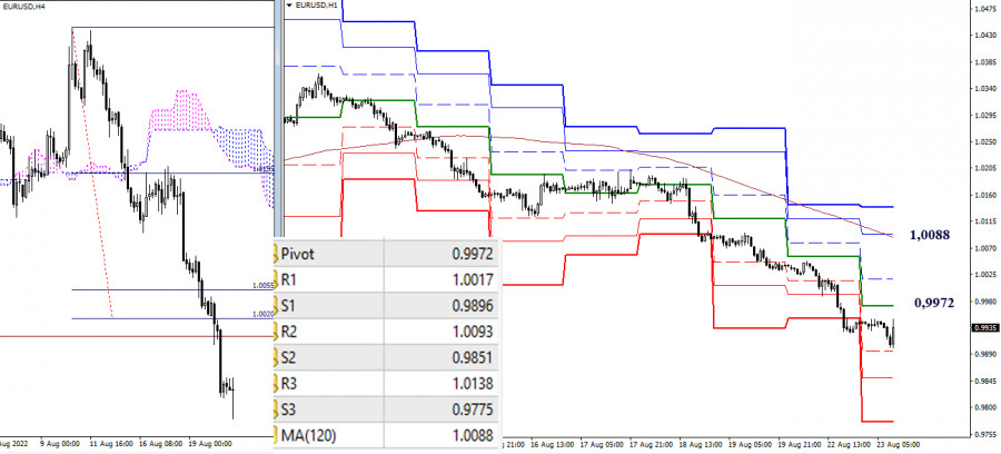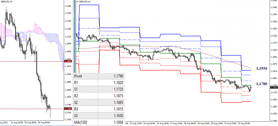 EUR/USD и GBP/USD 23 августа – рекомендации технического анализаИнстаФорекс - Instaforex, 3 года назад EUR/USD Старшие таймфреймы Настроения прошлой недели сохранили свою силу и преобладание, что поспособствовало продолжению снижения. Игроки на понижение сумели закрыть прошлые сутки ниже обозначенных ориентиров психологической поддержки (1,0000) и минимального экстремума (0,9952). Пройденные уровни 1,0000 и 0,9952, в случае торможения и некоторого восстановления позиций игроками на повышение, могут оказывать притяжение и сопротивление. Надёжное закрепление ниже 1,0000 и 0,9952 восстановит нисходящий тренд самых старших временных интервалов. Следующими ориентирами для снижения в сложившейся ситуации можно обозначить психологический уровень (0,9000) и минимальный экстремум 2000 года (0,8225). Н4 – Н1 На младших таймфреймах преимущество принадлежит игрокам на понижение. В настоящий момент они тестируют первую поддержку классических Пивот-уровней (0,9896). Следующими понижательными ориентирами внутри дня служат две другие поддержки классических Пивот-уровней 0,9851 (S2) и 0,9775 (S3). При развитии коррекции игрокам на повышение нужно будет сконцентрировать своё внимание на прохождении ключевых уровней, являющихся сейчас сопротивлениями на рубежах 0,9972 (центральный Пивот-уровень дня) и 1,0088 (недельная долгосрочная тенденция). Промежуточное сопротивление можно отметить на 1,0017 (R1). *** GBP/USD Старшие таймфреймы Вчера игроки на понижение обновили минимальный экстремум и протестировали его поддержку (1,1759). В ближайшее время сформируется результат взаимодействия с уровнем. При продолжении нисходящего трендового движения следующим понижательным ориентиром станет минимальный экстремум 2020 года, зафиксированный на рубеже 1,1411. Н4 – Н1 Пара продолжает снижение, действует нисходящий тренд, основное преимущество на младших таймах принадлежит игрокам на понижение. Понижательными ориентирами внутри дня являются поддержки классических Пивот-уровней (1,1725 – 1,1685 – 1,1630). Изменить действующий баланс сил поможет коррекционный подъём, закрепление выше ключевых уровней 1,1780 (центральный Пивот-уровень дня) – 1,1936 (недельная долгосрочная тенденция) и разворот мувинга. Промежуточное сопротивление на этом пути могут оказать сопротивления классических Пивот-уровней (1,1820 – 1,1875 – 1,1915). *** При техническом анализе ситуации используются: старшие таймфреймы – Ichimoku Kinko Hyo (9.26.52) + уровни Фибо Киджун Н1 – Pivot Points (классические) + Moving Avarage 120 (недельная долгосрочная тенденция) Материал предоставлен компанией InstaForex - www.instaforex.com |