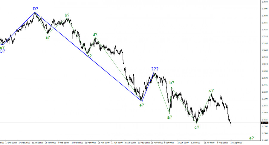 Анализ GBP/USD. 23 августа. Сектор производства Великобритании обвалился в августеИнстаФорекс - Instaforex, 3 года назад По инструменту Фунт/Доллар волновая разметка на данный момент выглядит довольно сложно, но пока не требует внесения уточнений. Повышательная волна, которая была построена в период между 13 и 27 мая, не вписывается в общую волновую картину, но все же ее можно считать коррекционной в составе нисходящего участка тренда. Таким образом, сейчас можно сделать вывод, что нисходящий участок тренда принимает более протяженный и сложный вид. Я не большой сторонник того, чтобы постоянно усложнять волновую разметку, когда мы имеем дело с сильно удлиняющимся участком тренда. А текущий тренд уже принял очень протяженный вид. Я считаю, что в таком случае гораздо лучше идентифицировать редкие коррекционные волны, после которых будут строиться новые четкие структуры. В данное время мы имеем завершенные волны a, b, c и d, так что можно предположить, что инструмент перешел к построению волны e. Если это предположение верно, то снижение котировок должно продолжаться в ближайшее время. Волновые разметки евро и фунта немного отличаются тем, что по евро нисходящий участок тренда имеет импульсный вид. Восходящие и нисходящие волны чередуются практически одинаково. Однако именно коррекционный статус тренда по британцу дает ему возможность завершить волну e около уровня 161,8% по Фибоначчи. Деловая активность в Великобритании тоже снижаетсяКурс инструмента Фунт/Доллар в течение 22 августа снизился на 70 базовых пунктов, а 23 числа – повысился на 10. Сегодня потерь у фунта практически не было, однако утром спрос на него продолжал снижаться и только после выхода индексов деловой активности в Великобритании спрос немного восстановился. И это очень странно, так как все три индекса оказались ниже своих июльских значений. Особенно огорчила сфера услуг, где индекс упал с 52,1 пункта до 46,0. Остальные два индекса остались выше отметки 50,0, но даже снижения одного индекса ниже 50,0 достаточно, чтобы начать бить тревогу. С моей точки зрения, все три индекса можно записывать в негативные. Однако фунт, который до этого снижался две недели, неожиданно ответил небольшим повышением. Я думаю, что свою роль сыграла неудачная попытка прорыва отметки 161,8% по Фибоначчи. Как я уже говорил, около нее британец может завершить построение не только волны e, но и всего последнего понижательного участка тренда. Сегодня рынок еще получит информацию по деловой активности в США. Там два индекса из трех ушли ниже отметки 50,0 еще в прошлом месяце. Лишь в сфере производства показатель остается в «зеленой зоне». Однако в этом месяце деловая активность может продолжаться снижаться, так как ФРС продолжает ужесточать денежно-кредитную политику и двигать экономику в сторону рецессии. Деловой активности сейчас просто не за счет чего увеличиваться. Но как отреагирует рынок на эти данные вечером, я предполагать не берусь. Слишком долгим и сильным было снижение инструмента в последнее время. Утренние индексы в Великобритании показали, что реакция рынка может быть противоположной от той, на которую все рассчитывают. Общие выводыВолновая картина инструмента Фунт/Доллар предполагает продолжение снижения спроса на фунт. Я советую сейчас продажи инструмента с целями, расположенными около расчетно