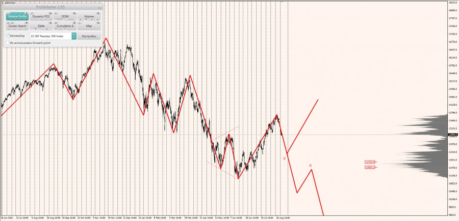 Долгосрочная тенденция: временная неопределенность (перебили максимум от 02.06.2022). Максимальное скопление объемов текущего контракта расположено в диапазоне по котировкам 11503.2-11723.6. В настоящий момент по Nasdaq совершаются инвестиционные операции выше, указывая на силу покупателей.
