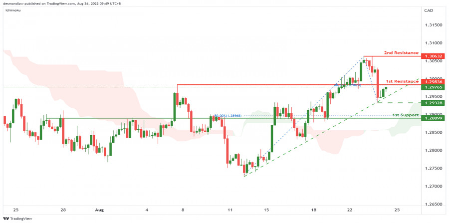 USD/CAD: возможен бычий отскок. Прогноз на 24 августа 2022 г.ИнстаФорекс - Instaforex, 3 года назад На 4-часовом графике пара USD/CAD движется выше индикатора Облако Ишимоку и вдоль восходящей линии тренда, что указывает на бычий импульс. Если цена преодолеет 1-й уровень сопротивления 1.29836, который соответствует текущему уровню свинг-хай и 38.2% уровню коррекции Фибоначчи, пара может вырасти ко 2-му уровню сопротивления 1.30632, соответствующему уровню свинг-хай. В качестве альтернативы цена может упасть до 1-го уровня поддержки 1.28899, соответствующего 50% уровню коррекции Фибоначчи. Обратите внимание, что уровень 1.29328 может выступать в качестве промежуточной поддержки. Если цена пробьет этот уровень, восходящая линия тренда будет пробита. Торговая рекомендация Вход: 1.29836 Условия для входа: текущий уровень свинг-хай и 38.2% уровень коррекции Фибоначчи Тейк-профит: 1.30632 Условия для фиксации прибыли: уровень свинг-хай Стоп-лосс: 1.28899 Условия для активации ордера стоп-лосс: 50% уровень коррекции Фибоначчи Материал предоставлен компанией InstaForex - www.instaforex.com |