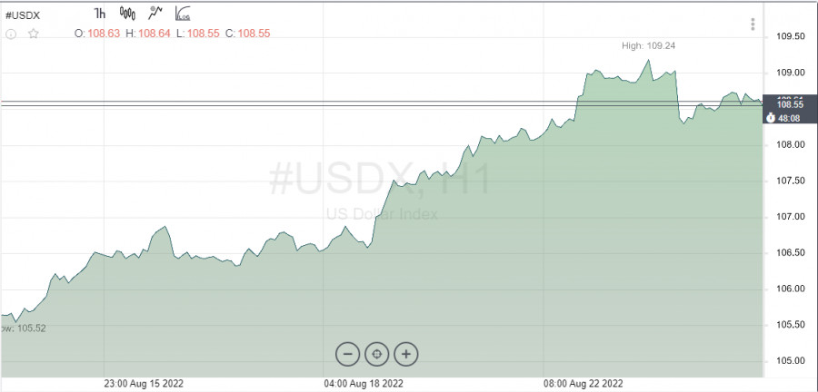 EUR/USD. Доллар теряет козыри. Сентябрь может стать последним месяцем масштабных повышений ставок ФРСИнстаФорекс - Instaforex, 3 года назад Трейдеры сегодня анализируют слабую статистику по США и ястребиные комментарии главы ФРБ Миннеаполиса Нила Кашкари. Его речь была созвучна с коллегами, он подтвердил, что ФРС в первую очередь сосредоточена на контроле инфляции. Кроме того, Кашкари отметил, что его самым большим страхом является недооценка степени текущего высокого ценового давления. Кашкари, как и другие сотрудники центрального банка США, заявил о готовности мириться с некоторым сокращением американской экономики, если это необходимо для сдерживания инфляции. PMI в сфере услуг и производства США, опубликованные во вторник, разочаровали, а продажи новых домов в июле упали до многолетнего минимума. На рынки закрались сомнения относительно дальнейшего масштабного ужесточения политики. Трейдеры еще не заняли четкой позиции в отношении ставок. Повысил ли ФРС ставку на 50.б.п. или на 75 б.п. в сентябре – этот вопрос остается открытым. Поэтому любая информация, будь то макроданные или заявления с мягким подтекстом, все еще могут повернуть рынок вспять. Верится, конечно, с трудом. Джером Пауэлл на пятничном выступлении сделает все, чтобы охладить ожидания среди инвесторов, которые ждут смягчения монетарных условий в 2023 году. Его речь должна укрепить настрой рынка до сентябрьского заседания FOMC. В среду индекс доллара отскочил к отметке 108,7, но сохраняет позитивный настрой. До этого он вновь поднимался до самого высокого уровня за 20 лет, поскольку свежий ястребиный комментарий Нила Кашкари перевесил слабые экономические данные страны. Индекс доллара поднимается шестой день подряд и может завершить лучшую неделю с марта 2020 года. Отдаленной целью покупателей выступает отметка 121,0, однако для этого индексу американской валюты необходимо пробить и закрепиться над максимумом от 14 июля в районе 109,2. Далее на графике не видно никаких важных точек, которые помешают пройти быкам к пиковой отметке января 2002 года в районе 120,5. Здесь недалеко и конечная цель 121,0 – максимум июля 2001 года. Евро на этом фоне выглядит еще более уязвимо, его продолжают преследовать неприятности, а опасения по поводу рецессии в Европе усугубляются. Те, кто ищет какой-то луч надежды, возможно, смогут его найти во вчерашних замечаниях члена правления ЕЦБ Фабио Панетты. Он считает, что рецессия смягчит инфляционное давление. Европейский регулятор повысил ставки только один раз, вернувшись к нулю. Между тем ФРС по-прежнему готова продолжать повышать ставки, даже если экономический рост замедлится. Это и делает пару EUR/USD максимально уязвимой. Стратеги инвестиционного банка Nomura ухудшили прогноз по евро, растет убежденность в том, что курс EUR/USD будет на несколько фигур ниже паритета. На данный момент в Nomura нацелены на снижение до 0,9750. Недавнее движение евро вновь нарушило паритет, но на этот раз ему не хватило количество коротких позиций и продолжения такого позиционирования. Пара EUR/USD отскочила к 1,0300. Удержаться же трейдерам выше этой отметки и продолжить движение вверх нет ни сил, ни возможности, поэтому сегодня котировка вновь ушла ниже паритета. В начале недели евро оказался под давлением газовой тематики. Цены подскочили после того, как Россия сообщила о закрытии Северного 