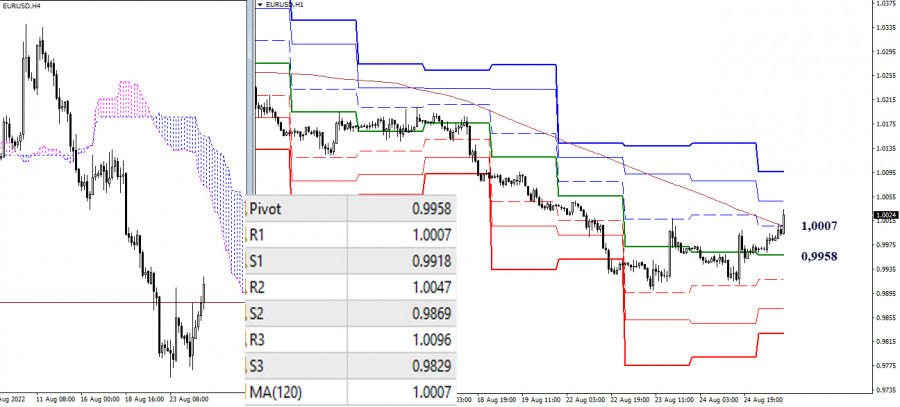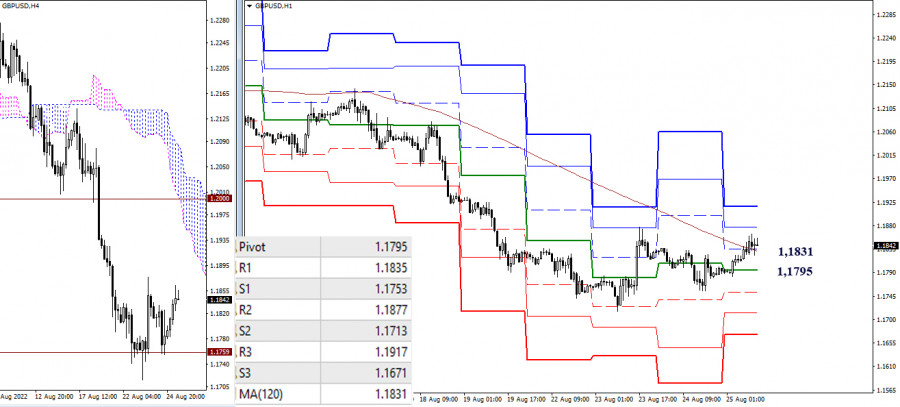 EUR/USD и GBP/USD 25 августа – рекомендации технического анализаИнстаФорекс - Instaforex, 3 года назад EUR/USD Старшие таймфреймы Прошлые рабочие сутки не принесли существенных изменений. Торможение и неопределённость сохранились. Сегодня мы наблюдаем попытку игроков на повышение изменить ситуацию и реализовать коррекционный подъём. Целью является закрепление выше 1,0000 и тестирование сопротивлений дневного креста Ишимоку, ближайшие уровни расположены на 1,0080 (краткосрочный тренд) – 1,0135 (среднесрочный тренд). О возврате медвежьего сценария можно будет говорить при восстановлении нисходящего тренда (0,9901 минимальный экстремум). Н4 – Н1 На младших таймах идёт борьба за недельную долгосрочную тенденцию (1,0007). Закрепление выше и разворот мувинга изменит действующий баланс сил. Повышательные ориентиры внутри дня 1,0047 – 1,0096 (сопротивления классических Пивот-уровней) сейчас можно добавить к ориентирам старших таймов. При возврате на сторону игроков на понижение центрального Пивот-уровня (0,9958) и выхода из зоны коррекции (0,9901) на рынок вернутся медвежьи настроения и перспективы. Внутри дня поддержками сегодня могут послужить классические Пивот-уровни (0,9918 – 0,9869 – 0,9829). *** GBP/USD Старшие таймфреймы Развитие ситуации не наблюдается. Пара предпочитает консолидироваться, используя как поддержку прошлый минимальный экстремум (1,1759). Ориентирами для подъёма сейчас служат уровни старших таймов, скопившиеся в достаточно широкой зоне сопротивления 1,1936 – 1,2000 – 1,2046 – 1,2073. В случае завершения консолидации или коррекции и возобновления нисходящего тренда (1,1716) можно ожидать новой активности медведей. Наиболее значимым ориентиром в этом направлении служит 1,1411 (минимальный экстремум 2020 года). Н4 – Н1 Пара находится в зоне коррекции, тестируя сейчас на прочность недельную долгосрочную тенденцию (1,1831). Закрепление выше и разворот мувинга помогут игрокам на повышение продолжить восстановление позиций. Далее внутри дня ориентиры для подъёма можно отметить на 1,1877 – 1,1917 (сопротивления классических Пивот-уровней). Для игроков на понижение основная задача сводится к выходу из зоны коррекции (1,1716) и продолжению нисходящего трендового движения, ориентиры которого внутри дня находятся сейчас на 1,1713 и 1,1671 (классические Пивот-уровни). *** При техническом анализе ситуации используются: старшие таймфреймы – Ichimoku Kinko Hyo (9.26.52) + уровни Фибо Киджун Н1 – Pivot Points (классические) + Moving Avarage 120 (недельная долгосрочная тенденция) Материал предоставлен компанией InstaForex - www.instaforex.com |