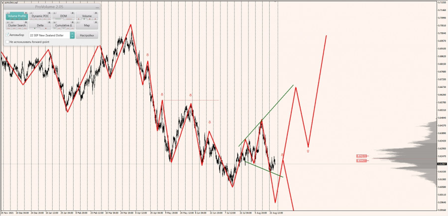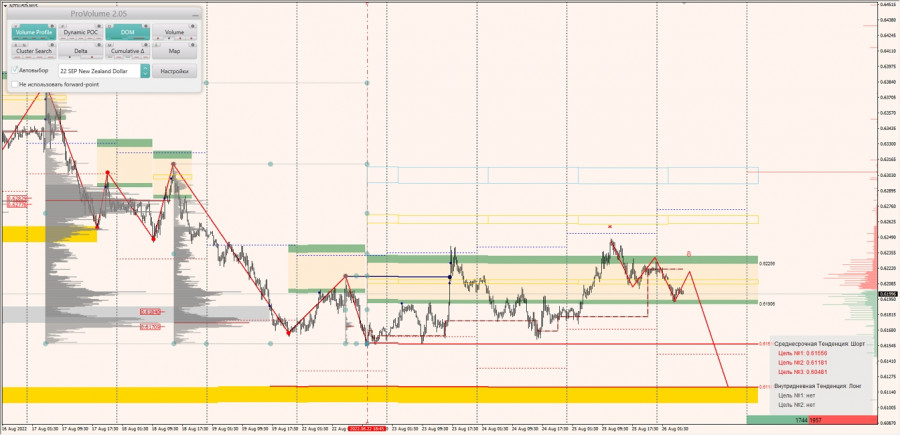 Долгосрочная тенденция: временная неопределенность. Максимальное скопление объемов текущего контракта расположено в диапазоне по котировкам 0.62208-0.62494. В настоящий момент по паре совершаются инвестиционные операции ниже, указывая на силу продавцов.