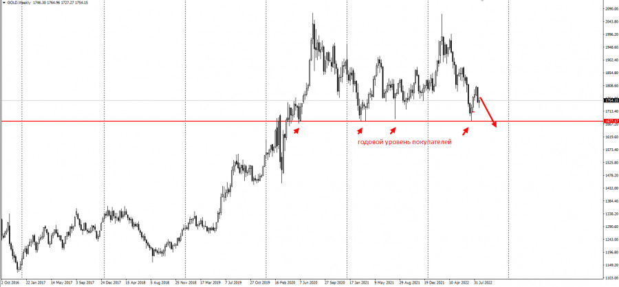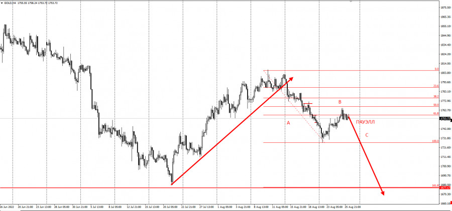 Торговая идея по золоту перед выступление ПауэллаИнстаФорекс - Instaforex, 3 года назад Добрый день, уважаемые трейдеры! Представляю вашему вниманию торговую идею по золоту. Итак, за последние несколько месяцев золотые котировки снизились почти на 3000п и в июле пятый раз тестировали уровень 1675$, оказывая на него невероятное давление, которое, с большой вероятностью, приведёт к его пробою. Сегодня вечером по московскому времени состоится важное выступление главы ФРС Пауэлла в Джексон Хоул по вопросам дальнейших перспектив ужесточения ДКП США, которое может дать толчок новым трендам. В начале августа прошла новая шортовая инициатива по золоту, которую можно взять опорной для набора продаж по следующей схеме: Фактически имеем трёхволновую структуру "АВС", где волной А выступает шортовая инициатива начала месяца. |