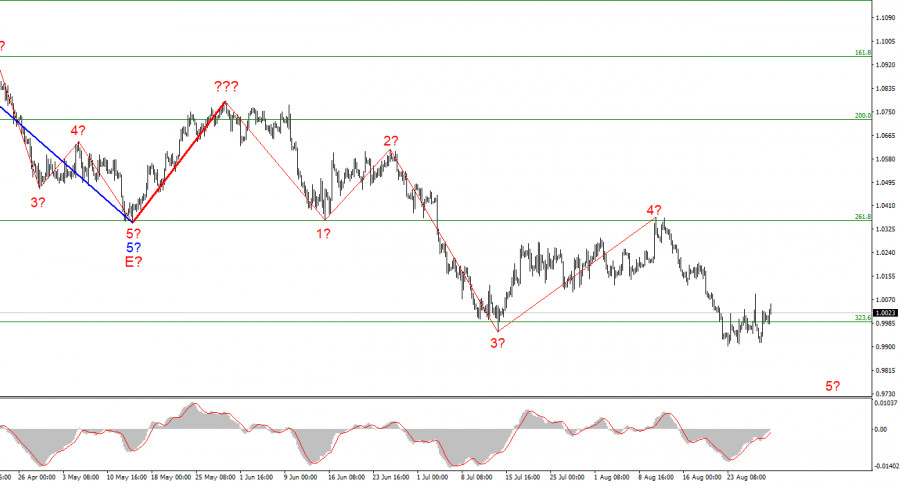 Анализ EUR/USD. 30 августа. Евровалюта надеется на поддержку ЕЦБИнстаФорекс - Instaforex, 3 года назад Волновая разметка 4-часового графика для инструмента Евро/Доллар на данный момент по-прежнему не требует внесения коррективов, несмотря на то что волна 4 выдалась более протяженной, чем я ожидал. Вся волновая структура может усложниться еще раз, однако любая структура всегда может принять более сложный и протяженный вид. Сейчас завершено построение восходящей волны, которая трактуется как волна 4 понижательного участка тренда. Если это действительно так, то инструмент продолжает построение нисходящей волны 5. Предполагаемая волна 4 приняла пятиволновой, но коррекционный, вид, однако все еще может считаться именно волной 4. Оснований предполагать завершение нисходящего участка тренда пока нет. Удачная попытка прорыва отметки 0,9989, что соответствует 323,6% по Фибоначчи, указывает на готовность рынка продолжать снижать спрос на евро. Я ожидаю, что снижение котировок инструмента возобновится с целями, расположенными ниже отметки 1,0000 в рамках волны 5. Волна 5 может принять практически любой по протяженности вид, так как волна 4 выдалась гораздо длиннее волны 2 – волны приобретают более протяженный вид по мере построения нисходящего участка тренда. Вторник выдался по-настоящему скучным днемИнструмент Евро/Доллар во вторник повысился на 25 базовых пунктов, но амплитуда движения сегодня была уже слабой. Было видно, что после активного понедельника на фоне отсутствующего новостной фона рынки не готова бросаться с головой в омут и предпочитают немного подождать новостей и отчетов. А таковых ждать долго не придется, так как уже завтра в Евросоюзе выйдет отчет по инфляции. И выйдет он на фоне разговоров о том, что ЕЦБ в сентябре может не только повысить ставку, но и увеличить шаг повышения с 50 базисных пунктов до 75. С моей точки зрения, пока что все это слухи и разговоры. Сначала нужно понять, что у нас с инфляцией. Если она продолжит расти, несмотря на первое за долгие годы повышение ставки ЕЦБ, тогда будет уместно говорить о наращивании темпов ужесточения денежно-кредитной политики. Строго говоря, ЕЦБ уже давно должен был перейти к активным действиям, сейчас же он напоминает пассажира, который бежит за уже уходящим поездом. Тем не менее лучше поздно, чем никогда. Наращивание темпов повышения ставки (если сентябрьское повышение не станет последним в 2022 году) может сослужить хорошую службу евровалюте и повысить немного спрос на нее. Однако на момент написания статьи я совершенно не вижу, чтобы рынок с радостью воспринял это известие. Спрос на евровалюту рос в течение сегодняшнего дня, но разве 25 базовых пунктов можно назвать существенным ростом? Исходя из всего вышесказанного, мне кажется, что волна 5 будет продолжать свое построение еще некоторое время. Волновая картина допускает вариант с завершением не только волны 5, но и всего понижательного участка тренда, но в то же время он может усложняться еще сколько угодно раз. Все будет зависеть от новостного фона и действий ЕЦБ и ФРС на ближайших заседаниях. Общие выводыИсходя из проведенного анализа, я делаю вывод, что построение нисходящего участка тренда продолжается. Советую сейчас продавать инструмент с целями, расположенными около расчетной отметки 0,9397, что приравнивается к 423,6% по Фибоначчи, по к