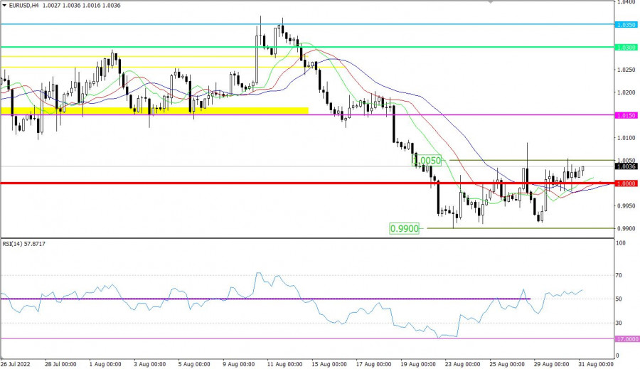 Горящий прогноз по EURUSD от 31.08.2022ИнстаФорекс - Instaforex, 3 года назад Сегодня поводом для ослабления доллара США станут предварительные данные по инфляции в Европе, которая должна ускориться с 8,9% до 9,1%. А это значит, что ЕЦБ будет активно повышать процентные ставки, что станет причиной укрепления единой европейской валюты. А она уже потянет за собой и другие валюты. Учитывая высокую значимость инфляции, публикуемые данные по занятости в Соединенных Штатах, которая, к слову, должна вырасти на 180 тыс., мало на что повлияет. Валютная пара EURUSD весь минувший день условно стояла на одном месте. Движение происходило между уровнем паритета и переменным значением 1.0050. Фактически на рынке имел место процесс накопления торговых сил, где трейдеры взяли паузу, которая в итоге может стать рычагом для спекулятивных скачков. Технический инструмент RSI H4 движется в верхней области индикатора 50/70, что с точки зрения индикаторного анализа указывает на преобладающий восходящий интерес на рынке. Стоит отметить, что котировка уже как вторую неделю движется в боковом канале 0.9900/1.0050. Тем самым сигнал от индикатора RSI H4 может быть нестабильный. Скользящие линии MA на Alligator H4 имеют множество пересечений, что соответствует стадии флета. Alligator D1 направлен вниз, пересечения между линиями MA отсутствует. Этот сигнал от индикатора соответствует направлению основного тренда. Ожидания и перспективыНесмотря на имеющиеся застой, котировка по-прежнему движется в рамках боковой амплитуды 0.9900/1.0050. По этой причине основные решения будут приняты трейдеры после того как одно из значений действующего диапазона будет пробито. Нисходящий ход нужно рассматривать после удержания цены ниже значения 0.9900 в четырехчасовом периоде. Комплексный индикаторный анализ в краткосрочном и внутридневном периодах имеют переменный сигнал за счет действующего флета. Индикаторы в среднесрочном интервале ориентированы на нисходящий тренд. Материал предоставлен компанией InstaForex - www.instaforex.com |