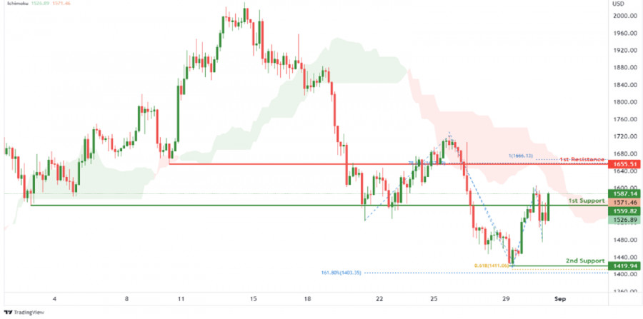 Ожидается снижение пары ETH/USD. Прогноз на 31 августа 2022ИнстаФорекс - Instaforex, 3 года назад На 4-часовом графике пара ETH/USD движется ниже индикатора Ишимоку, что указывает на медвежий импульс. По прогнозам, цена упадет до 1-го уровня поддержки 1559.82, соответствующего перекрытию, выступающему в роли поддержки. Как только цена пробьет 1-й уровень поддержки, ожидается, что медвежий импульс направит цену ко 2-му уровню поддержки 1419.94, который соответствует уровню уровню свинг-лоу, выступающему в качестве поддержки, проекции Фибоначчи 61.8% и уровню расширения Фибоначчи 161.8%. В качестве альтернативы цена может укрепиться до 1-го уровня сопротивления 1655.51, соответствующего линии сопротивления, 100% проекции Фибоначчи и 78.6% уровню коррекции Фибоначчи. Торговая рекомендация Вход: 1559.82 Условия для входа: перекрытие, выступающее в роли поддержки Тейк-профит: 1419.94 Условия для фиксации прибыли: уровень свинг-лоу, выступающий в качестве поддержки, проекция Фибоначчи 61.8% и уровень расширения Фибоначчи 161.8% Стоп-лосс: 1655.51 Условия для фиксации ордера стоп-лосс: линия сопротивления, 100% проекция Фибоначчи и 78.6% уровень коррекции Фибоначчи Материал предоставлен компанией InstaForex - www.instaforex.com |