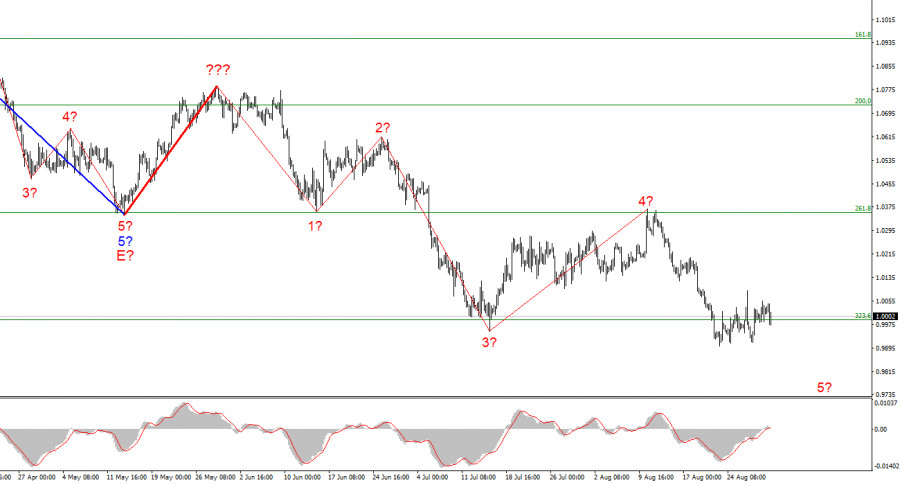 Анализ EUR/USD. 31 августа. Инфляция в ЕС продолжает ускорятьсяИнстаФорекс - Instaforex, 3 года назад Волновая разметка 4-часового графика для инструмента Евро/Доллар на данный момент по-прежнему не требует внесения коррективов, несмотря на то что волна 4 выдалась более протяженной, чем я ожидал. Вся волновая структура может усложниться еще раз, однако любая структура всегда может принять более сложный и протяженный вид. Сейчас завершено построение восходящей волны, которая трактуется как волна 4 понижательного участка тренда. Если текущая волновая разметка верна, то инструмент продолжает построение нисходящей волны 5. Предполагаемая волна 4 приняла пятиволновой, но коррекционный, вид, однако все еще может считаться именно волной 4. Оснований предполагать завершение нисходящего участка тренда пока нет. Удачная попытка прорыва отметки 0,9989, что соответствует 323,6% по Фибоначчи, указывает на готовность рынка продолжать снижать спрос на евро. Я ожидаю, что снижение котировок инструмента возобновится с целями, расположенными ниже отметки 1,0000 в рамках волны 5. Волна 5 может принять практически любой по протяженности вид, так как волна 4 выдалась гораздо длиннее волны 2 – волны приобретают более протяженный вид по мере построения нисходящего участка тренда. Вторник выдался по-настоящему скучным днемИнструмент Евро/Доллар в среду вновь двигался с невысокой амплитудой, хотя как раз сегодня для рынков были интересные новости. Отчет по инфляции в Евросоюзе за август был, безусловно, важнейшим событием дня и недели для Европы. Индекс потребительских цен в очередной раз показал ускорение и составляет уже 9,1% г/г. В месячном выражении цены ускорились на 0,5%. Базовая инфляция выросла до 4,3% г/г. Практически во всех случаях ожидания рынка были либо ниже, либо такими же. Таким образом, я могу сказать следующее: отчет по инфляции в очередной раз разочаровал. Спрос на европейскую валюту за три часа до выхода отчета начал снижаться, но после выхода – начал расти. Похоже, что рынок заранее предполагал рост инфляции и заранее отработал его. Однако в общем и целом волновая картина абсолютно не изменилась, а реакция рынка на отчет никак не повлияла на инструмент Евро/Доллар, который уже почти две недели торгуется горизонтально. Тем не менее шансы на продолжение снижения остаются довольно высокими. Технически нисходящий участок тренда может быть завершен уже сейчас, так как лоу волны 5 находится ниже лоу волны 3. Но почему тогда не начинается построение нового повышательного участка тренда? Я считаю только потому, что текущий участок тренда еще не завершен. Если это предположение верно, то снижение инструмента будет продолжаться, невзирая на новостной фон. В эту пятницу в США выйдет один из наиболее важных отчетов для рынка – Nonfarm Payrolls. Рынки ожидают, что число новых рабочих мест, созданных в стране, будет снижаться от месяца к месяцу, так как ФРС активно повышает процентную ставку, ведя экономику к рецессии. В пятницу спрос на доллар может упасть, но вряд ли он упадет надолго или навсегда. Отход котировок от достигнутых минимумов пока выглядит как внутренняя коррекционная волна внутри 5. Общие выводыИсходя из проведенного анализа, я делаю вывод, что построение нисходящего участка тренда продолжается. Советую сейчас продавать инструмент с целями, расположенными