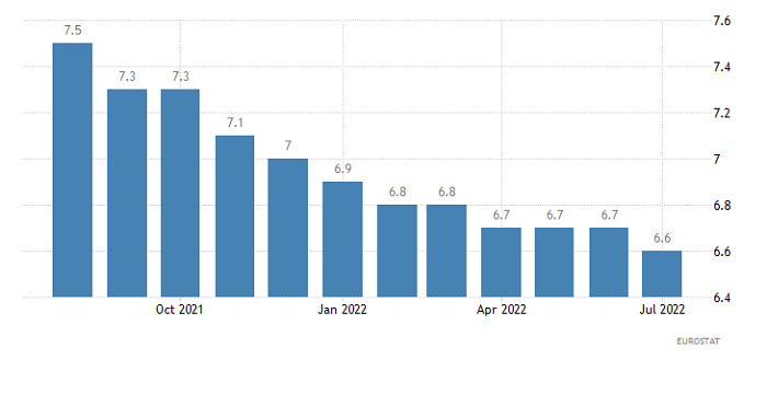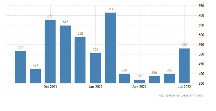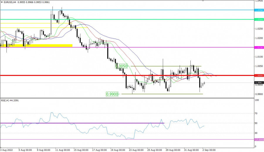 Горящий прогноз по EUR/USD от 02.09.2022ИнстаФорекс - Instaforex, 3 года назад Вчера единая европейская валюта продемонстрировала довольно внушительное снижение, вновь опустившись ниже паритета. И началось это еще во время европейской торговой сессии, под влиянием собственно европейской макроэкономической статистики. В частности, итоговые данные по индексу деловой активности в производственном секторе оказались хуже предварительной оценки, и снизился с 49,8 пунктов до 49,6 пунктов. Тогда как предварительная оценка показала снижение до 49,7 пунктов. Кроме того, данные по безработице тоже оказались не самыми лучшими, хотя формально, она снизилась с 6,7% до 6,6%. Но фактически, она осталась неизменной, так как предыдущие данные были пересмотрены в большую сторону. Уровень безработицы (Европа): А вот в Соединенных Штатах итоговые данные по индексу деловой активности в производственном секторе оказались лучше предварительной оценки, показавшей снижение с 52,2 пунктов до 51,3 пунктов. По факту, он снизился до 51,5 пунктов. Однако, укрепление доллара все равно вызывает определенное удивление, так как данные по заявкам на пособия по безработице не внушают оптимизма. Конечно, количество первичных обращений уменьшилось на 5 тыс. Но вот количество повторных обращений возросло на 26 тыс. А это довольно много. Количество повторных заявок на пособия по безработице (Соединенные Штаты): Вполне возможно, что рост доллара носит сугубо спекулятивный характер, в преддверии сегодняшней публикации доклада Министерства труда Соединенных Штатов. И хотя по прогнозам уровень безработицы должен остаться неизменным, данные по изменению занятости явно указывают на высокий потенциал его роста. Кроме того, вне сельского хозяйства должно быть создано 310 тыс. новых рабочих мест, против 528 тыс. в предыдущем месяце. Столь сильное снижение темпов создания новых рабочих мест явно намекает на то, что американский рынок труда теряет динамику, и ситуация начинает ухудшаться, что и станет поводом для резкого ослабления доллара. Количество новых рабочих мест, созданных вне сельского хозяйства (Соединенные Штаты): Валютная пара EURUSD вчера проявила локальный спекулятивный интерес к коротким позиция. Вследствие чего, котировка опустилась ниже уровня паритета практически достигнув нижней границы боковой амплитуды 0.9900/1.0050. Технический инструмент RSI H4 в момент нисходящего импульса пересек среднюю линию 50 сверху вниз. В итоге индикатор закрепился в нижней области 30/50, что указывает на нисходящий настрой участников рынка. Стоит отметить, что сигналы от RSI H4 имеют переменный характер ввиду того, что котировка, как и прежде движется в рамках боковой формации. Скользящие линии MA на Alligator H4 имеют множество пересечений, что соответствует стадии флета. Alligator D1 направлен вниз, пересечения между линиями MA отсутствует. Этот сигнал от индикатора соответствует направлению основного тренда. В данном случае усиление нисходящего сигнала возникнет в момент удержания линий MA (D1) ниже уровня паритета. Ожидания и перспективы Сближение цены с нижней границей флета 0.9900 привело к росту объема длинных позиций, как результат на рынке возник отскок. Несмотря на переменный спекулятивный интерес, котировка по-прежнему находится в боковике на основании нисходящего тренда. Тем самым работа может быть выстроена исхо