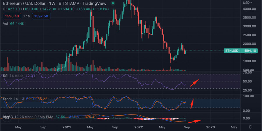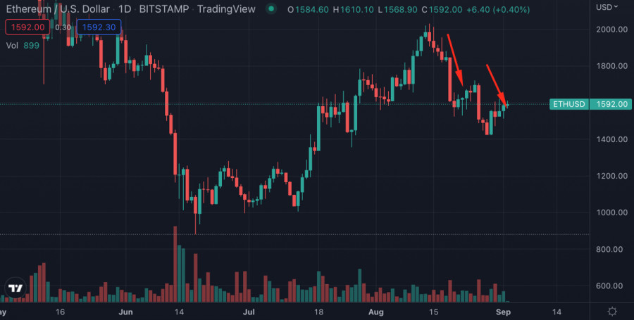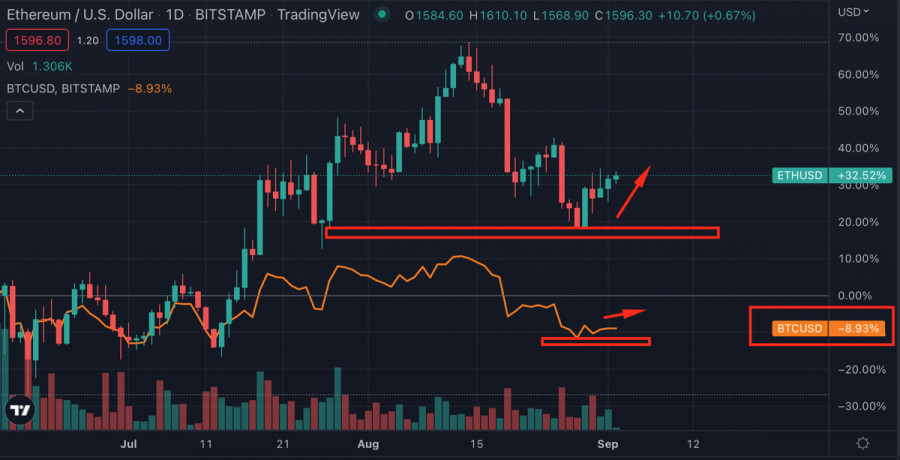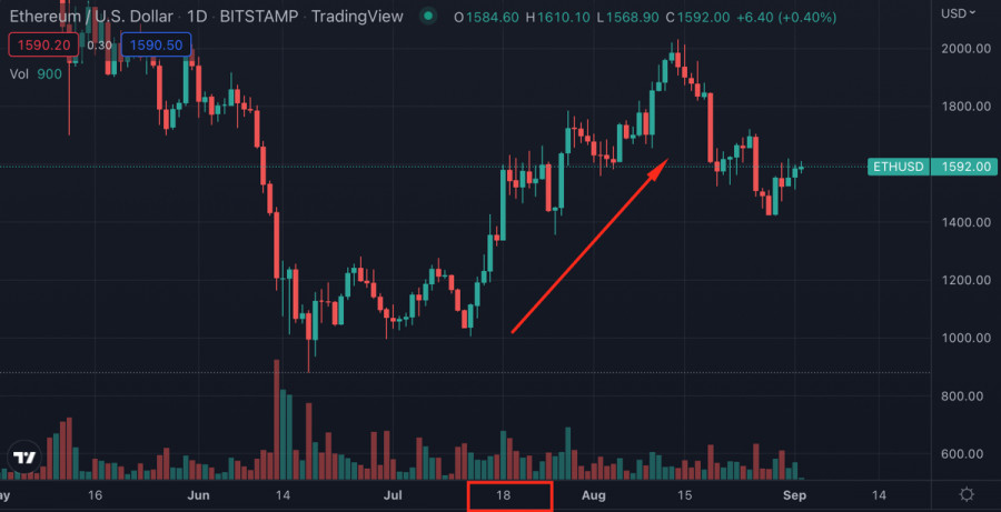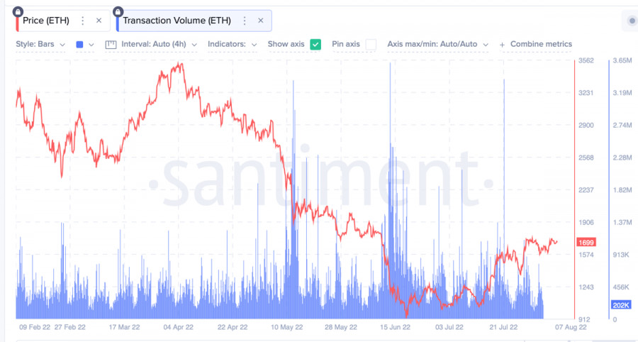 Ethereum может обновить локальный минимум перед Merge: стоит ли ждать падения цены альткоина?ИнстаФорекс - Instaforex, 3 года назад Ethereum завершил август на медвежьей ноте, несмотря на инвестиционный взрыв в начале месяца. Команде проекта не удалось удержать волну хайпа в отношении Merge, что спровоцировало падение капитализации альткоина на 7,33%. Отчасти падение эфира спровоцировано фундаментальными факторами и сохранением негативных макроэкономических тенденций. Ключевой причиной падения котировок ETH/USD стала перегретость альткоина и высокий уровень инфляции. Криптовалюта начала восходящее движение в середине июля, параллельно с Биткоином. Бычий запал основных криптовалют был вызван коррекцией индекса доллара США и переориентацией инвестиционных потоков. И если Биткоин обновлял локальные максимумы исключительно под влиянием позитивных новостей. А напомним, что в тот же период ФРС запустил печатный станок, чтобы стабилизировать евро, а инфляция показала первое падение. Ситуация с эфиром кардинально отличалась за счет грядущего обновления Merge. Маркетинговая составляющая подогревала интерес к эфиру, а успешные слияния и проведение транзакций в тестнетах лишь добавляли бычьего запала инвесторам. Однако повышение инвестиционной активности за счет маркетинговых активностей и локального фундаментального позитива сыграли против альткоина. Цена эфира росла и достигла локального максимума вблизи уровня $2000, однако потенциал восходящего движения цены быстро иссяк. Ключевую роль в быстрой реализации восходящего импульса сыграла инфляция ETH. Инвестиционный интерес к эфиру в связи с обновлением стал резким и отчасти неожиданным. Торговая активность в сети альткоина приобрела позитивную динамику, но одновременно привела к пику инфляции Ethereum в конце июля. Низкие комиссии за транзакции спровоцировали снижение эффективности алгоритма сжигания криптовалюты. За счет больших объемов монет в активном обращении и низких комиссионных, инфляционное давление снизило общую ценность ETH. В результате основные метрики эфира быстро достигли зон перекупленности, а монета все чаще прерывало восходящее движение на коррекции. Это затормозило рост криптовалюты, и позволило ей достичь уровня в $2000. Впоследствии ETH укрепил корреляцию с Биткоином и фондовыми индексами, что спровоцировало падение цены на 7,33%. Альткоин снижался до важной зоны поддержки на отметке $1400, и успешно удержал ее. Отчасти это связано с повышенной корреляцией с Биткоином, который также удерживает основные зоны поддержки. Однако ключевую роль в устойчивости эфириума сыграло надвигающееся обновление Merge. Однако рынок не демонстрирует существенного интереса и позитива к переходу ETH на PoS. В первую очередь это связано с отсутствием консенсуса среди основных майнинг-пулов эфира, а также вероятной цензурой. Рынок захлестнула волна негатива касательно санкционной политики США и готовности команды ETH ей следовать. Несмотря на негатив, обновление носит фундаментальный характер для альткоина и способно спровоцировать еще один локальный бычий забег. Долгосрочные инвесторы и майнеры увеличили свои объемы ETH до трехлетнего максимума. Основные ончейн-метрики также демонстрируют восходящую динамику. После нисходящего тренда числа уникальных адресов в сети эфириума, связанного с мощн